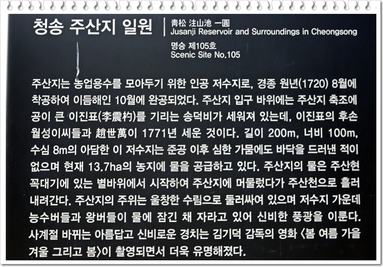 수령이 300년이 넘어 주산지 축조 때부터 있었던 고목