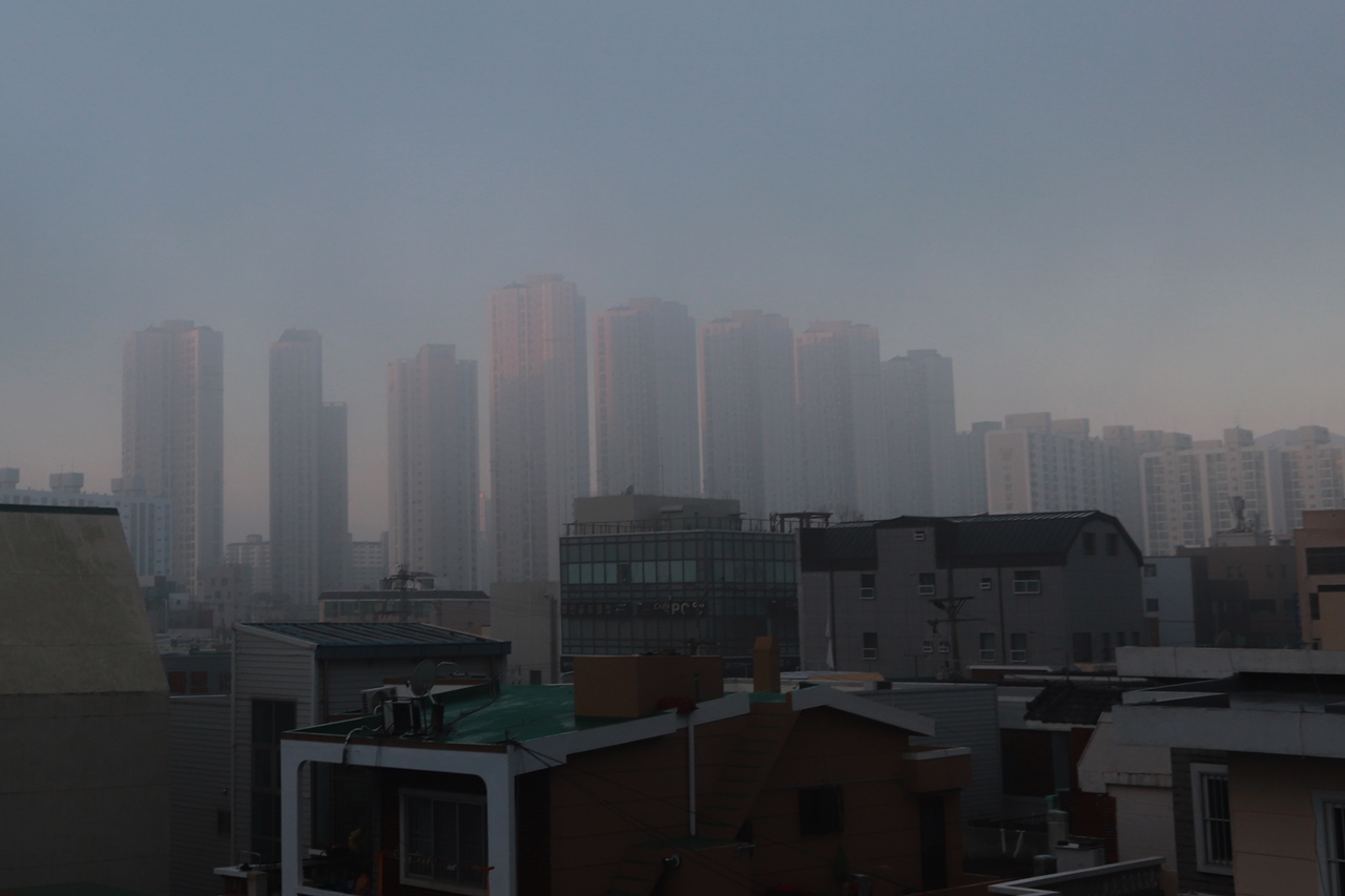 아침 햇살이 퍼지기 전에 안개가 짙게 끼었다.