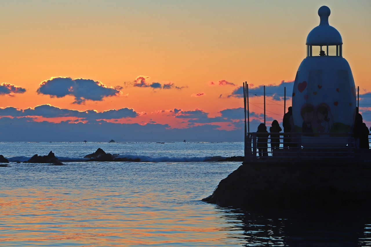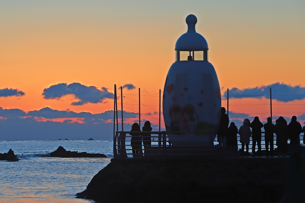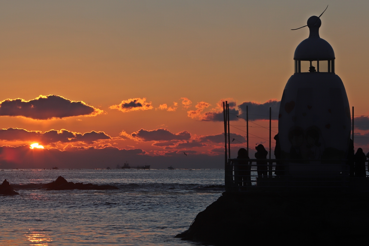 부산 기장 연화리 서암포구 젖병등대에서 일출을 보다.