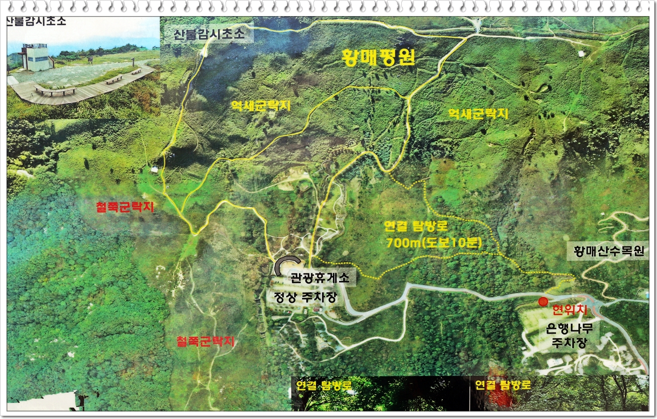 은행나무주차장에서 정상주차장 가는 길에 본 철쭉과 황매산