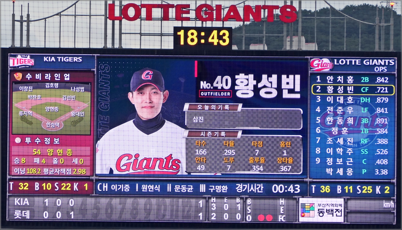 사직야구장에서 열린 롯데 자이안트 VS 기아 타이거스 경기를 관람했다.