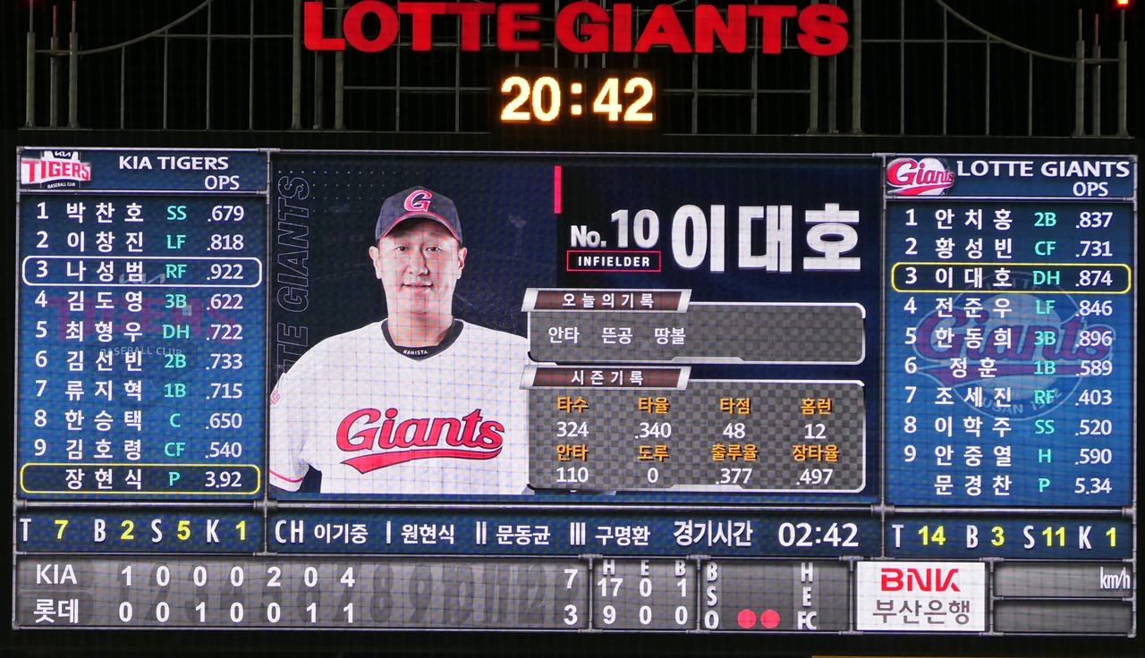 2루타를 쳤으나 특점과는 연결되지 않은 이대호선수