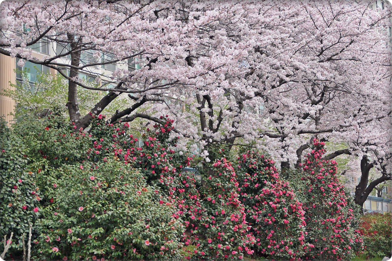 벚꽃과 동백, 황매화, 철쭉, 유채꽃이 콜라보를 이루면서 피어나다.