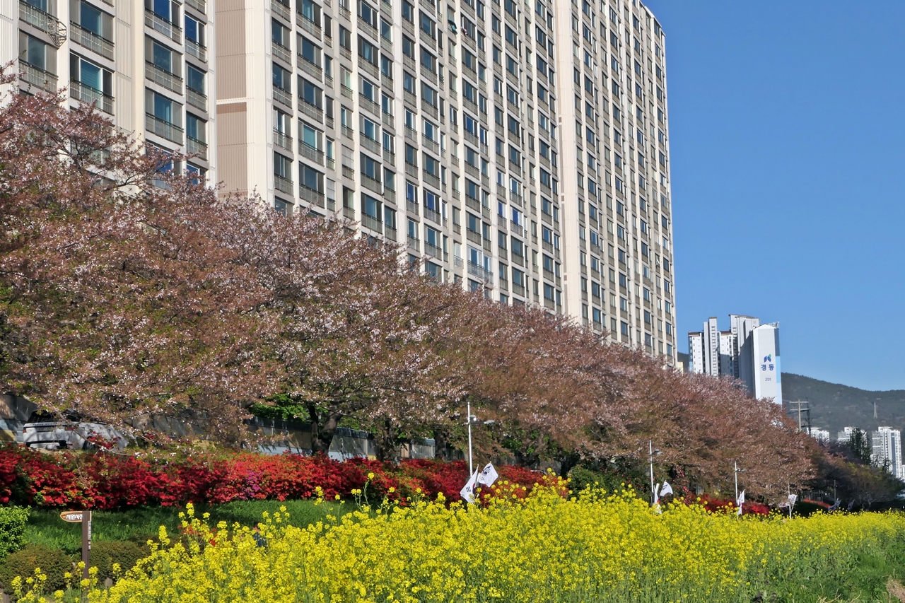 벚꽃은 거의 다 지고 유채꽃은 만개를 시작한다.
