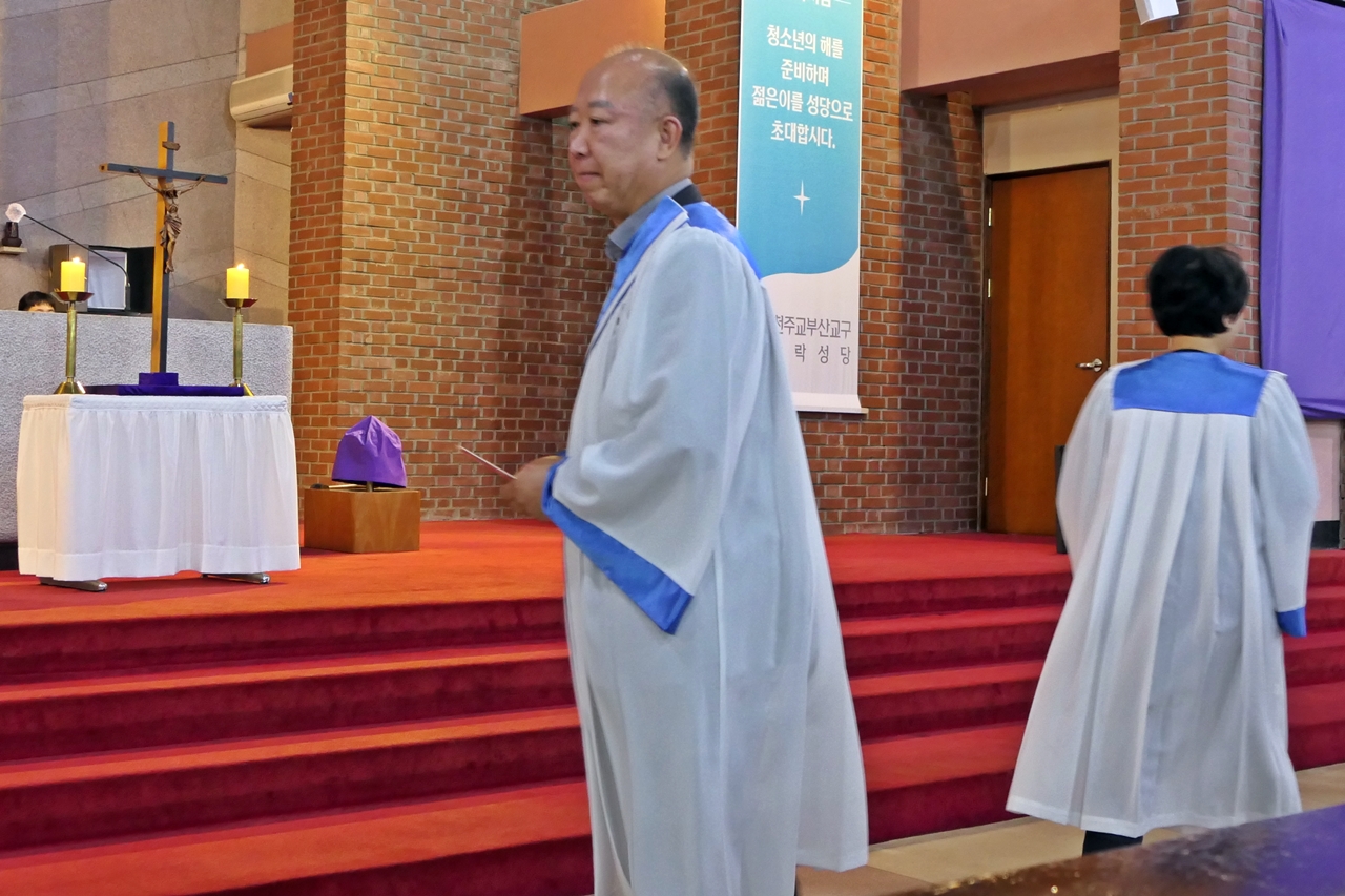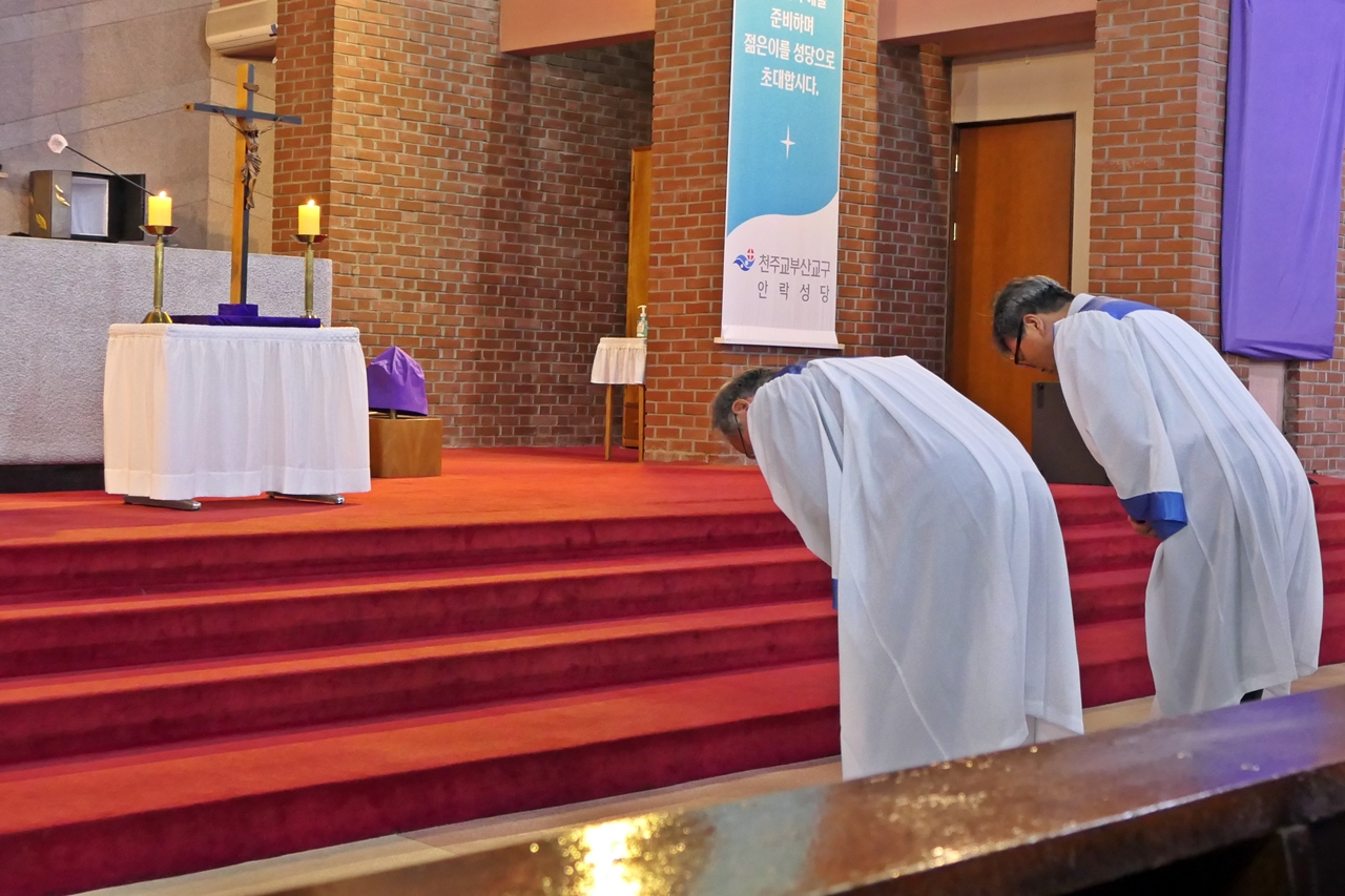 제단에 오르기 전 주례사제의 장궤