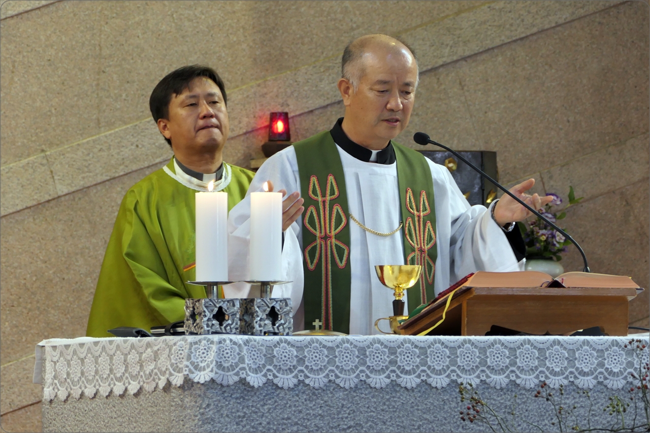 미사를 주례하신 이환규(안드레아) 신부의 복음선포와 미사강론