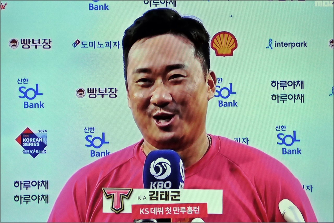 한국시리즈 5번째 만루홈런 (그랜드슬럼)을 치는 기아의 김태군 선수
