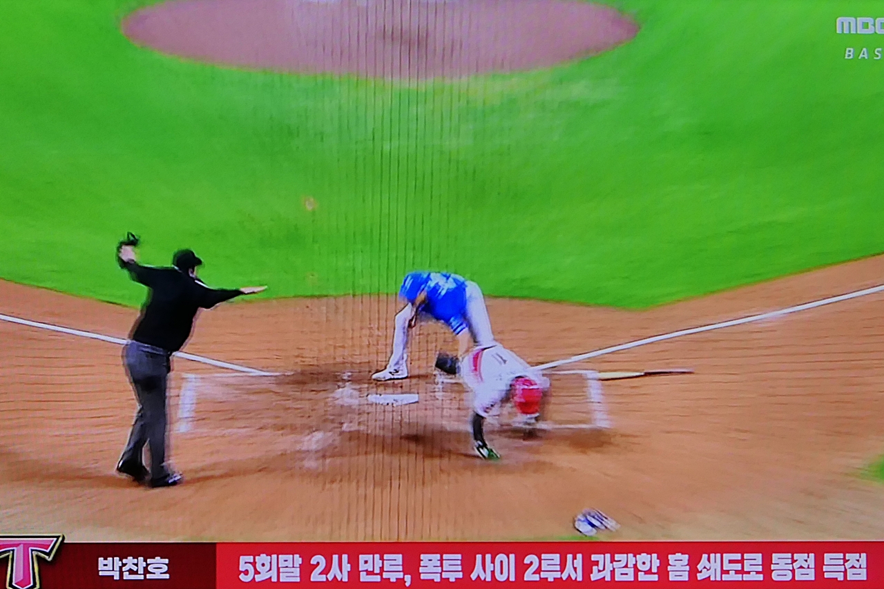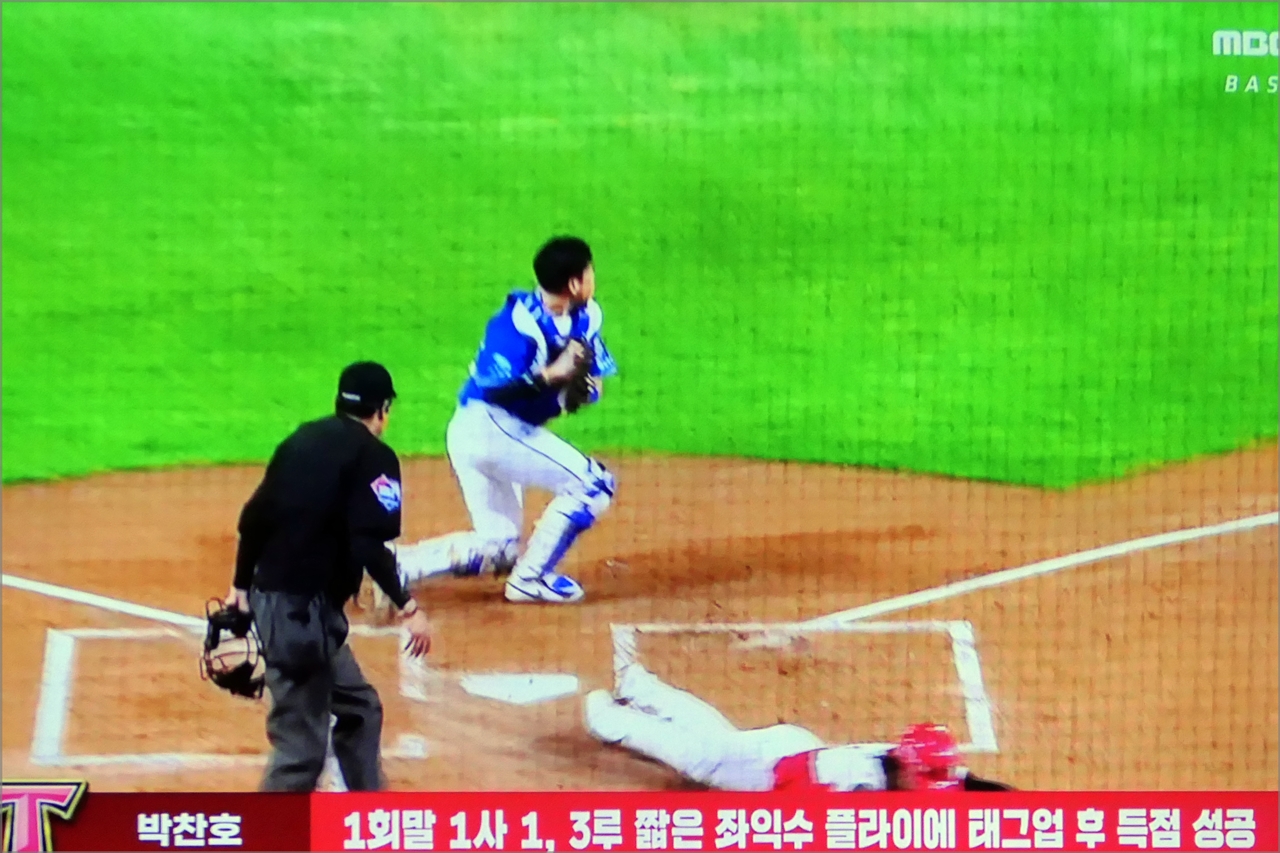 8회 말 박찬호 2루타 시 이창진의 홈인으로 7 : 5의 쐐기점 획득