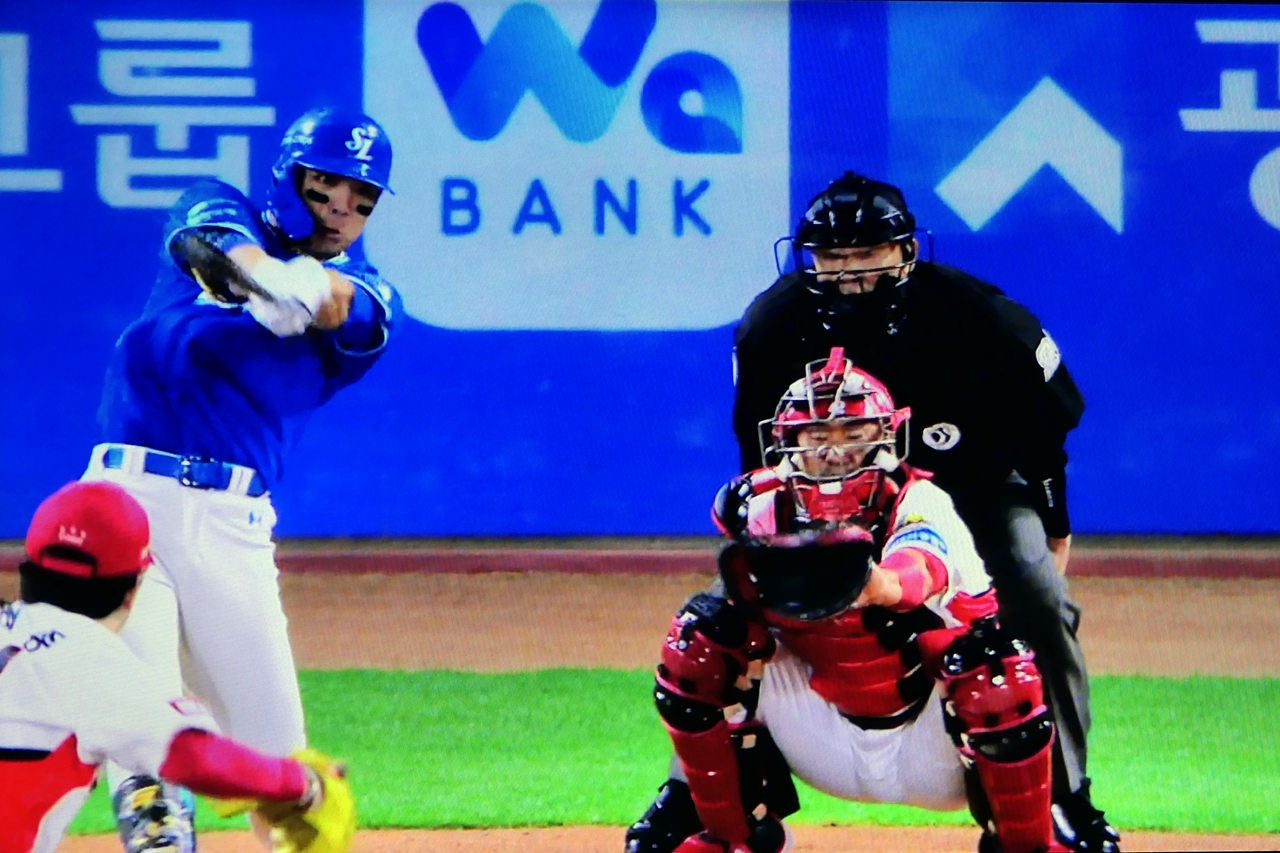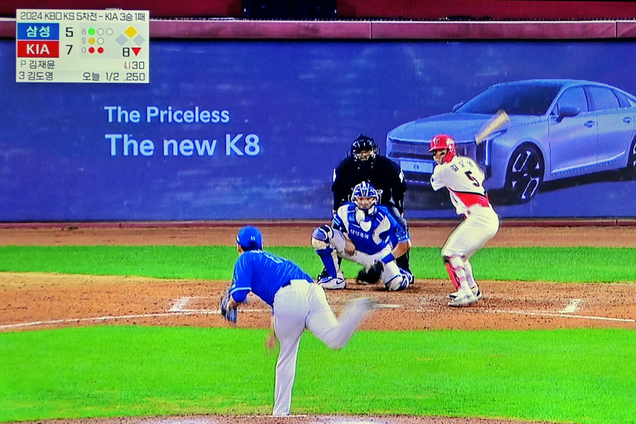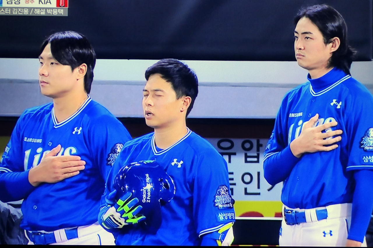 삼성의 마지막 타자 김성윤이 3진 아웃으로 경기 종료