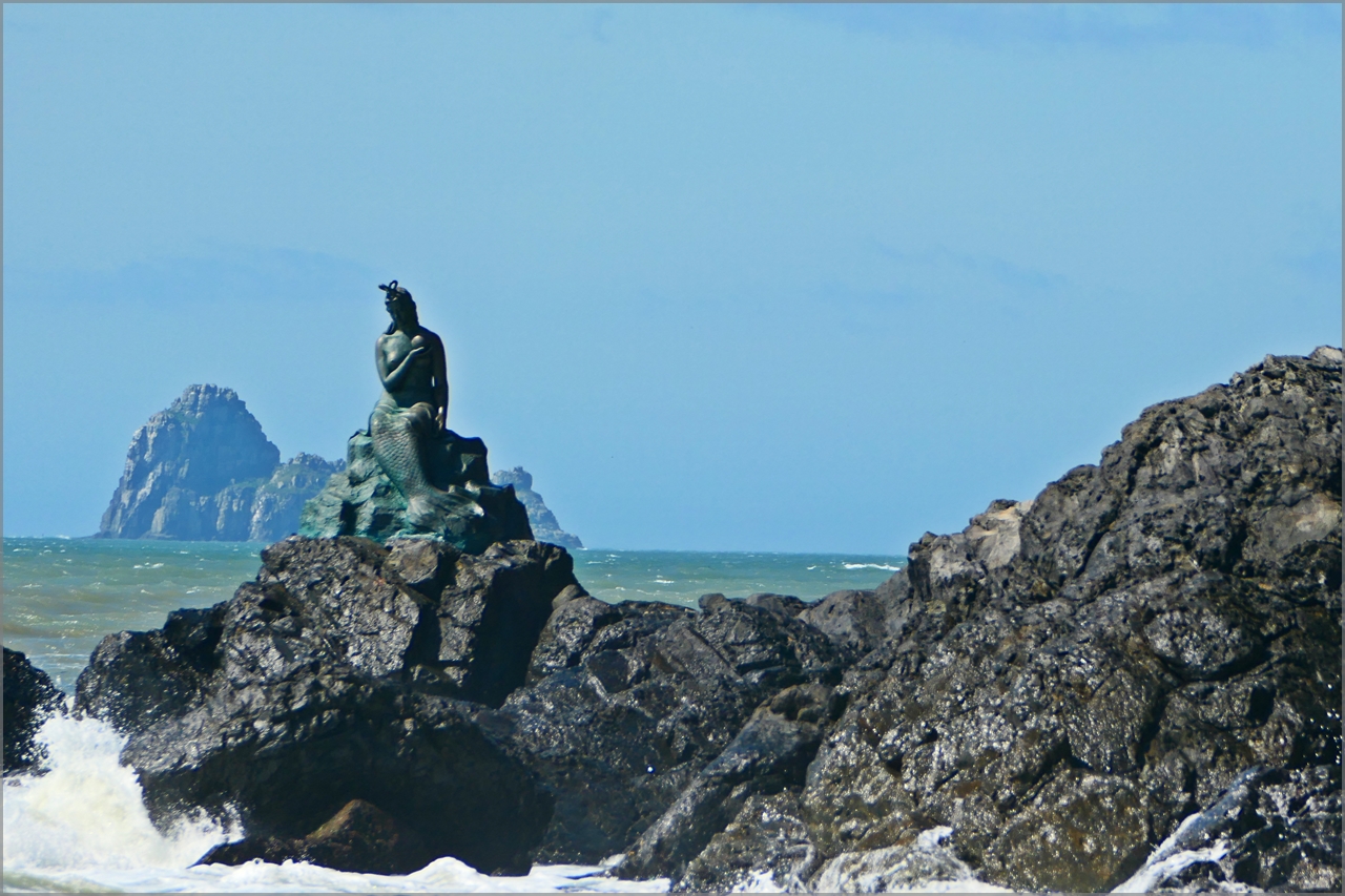 동백섬 황옥공주동상과 뒷편의 오륙도