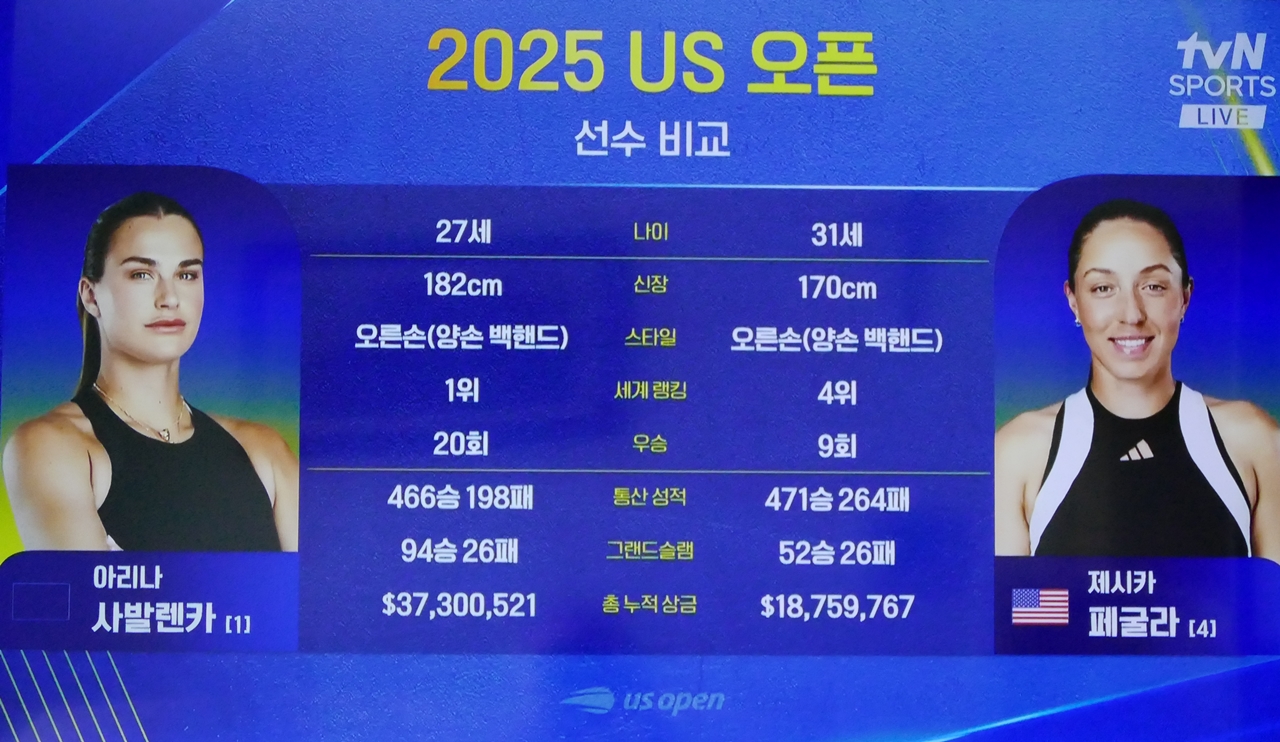사발렌카는 우승 상금으로 500만 달러(약 70억원)를 받았다.