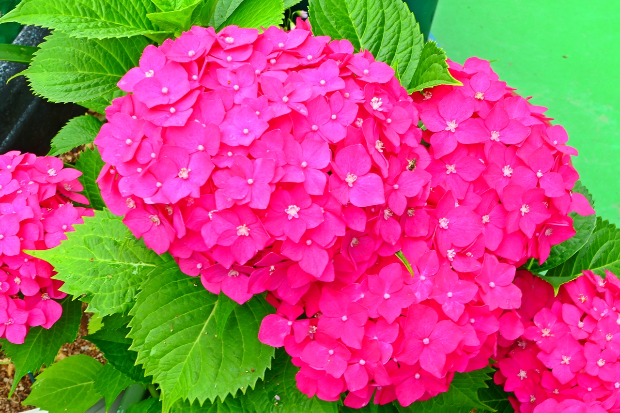 수국은 꽃봉오리는 흰색이나 만개하면 붉은색깔로 바뀐다.