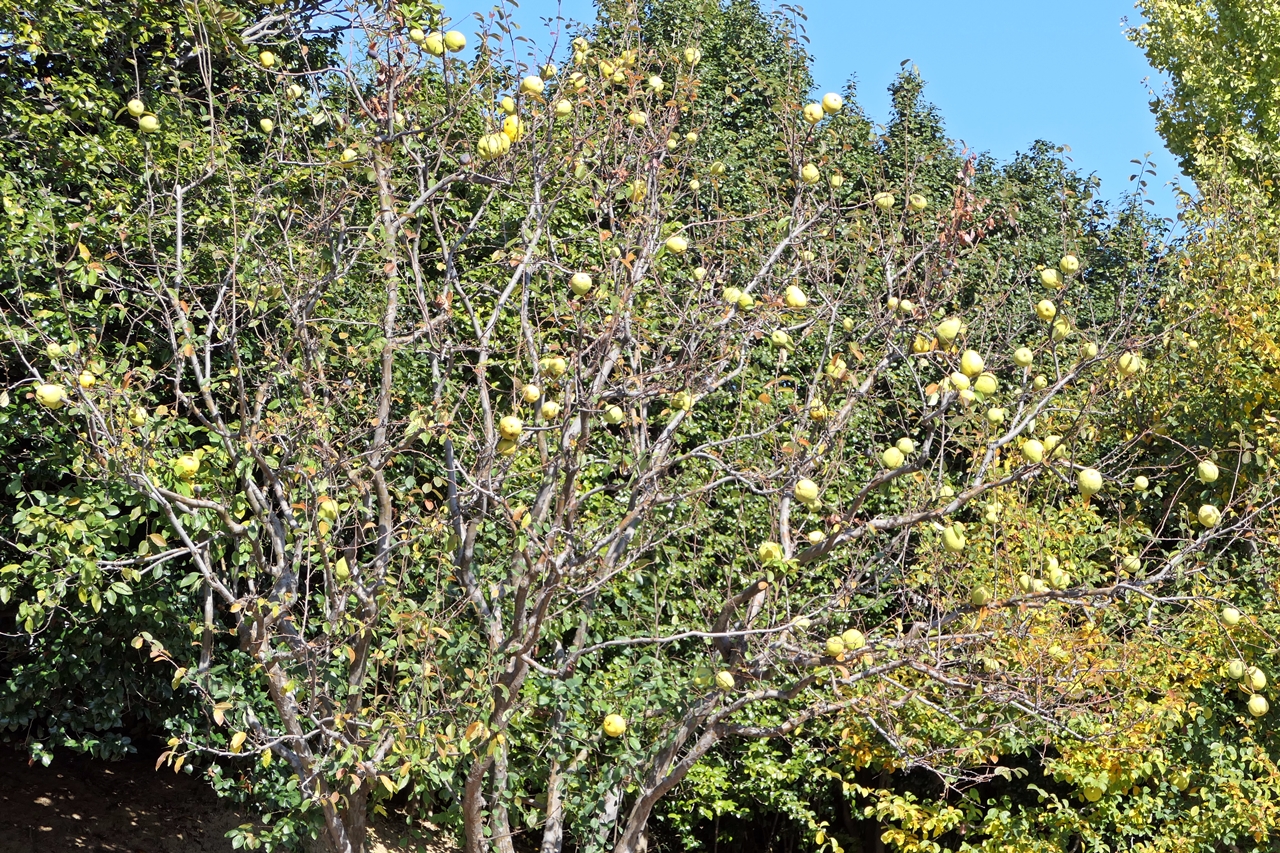 모과가 주렁주렁 달린 의중지 옆 모과나무