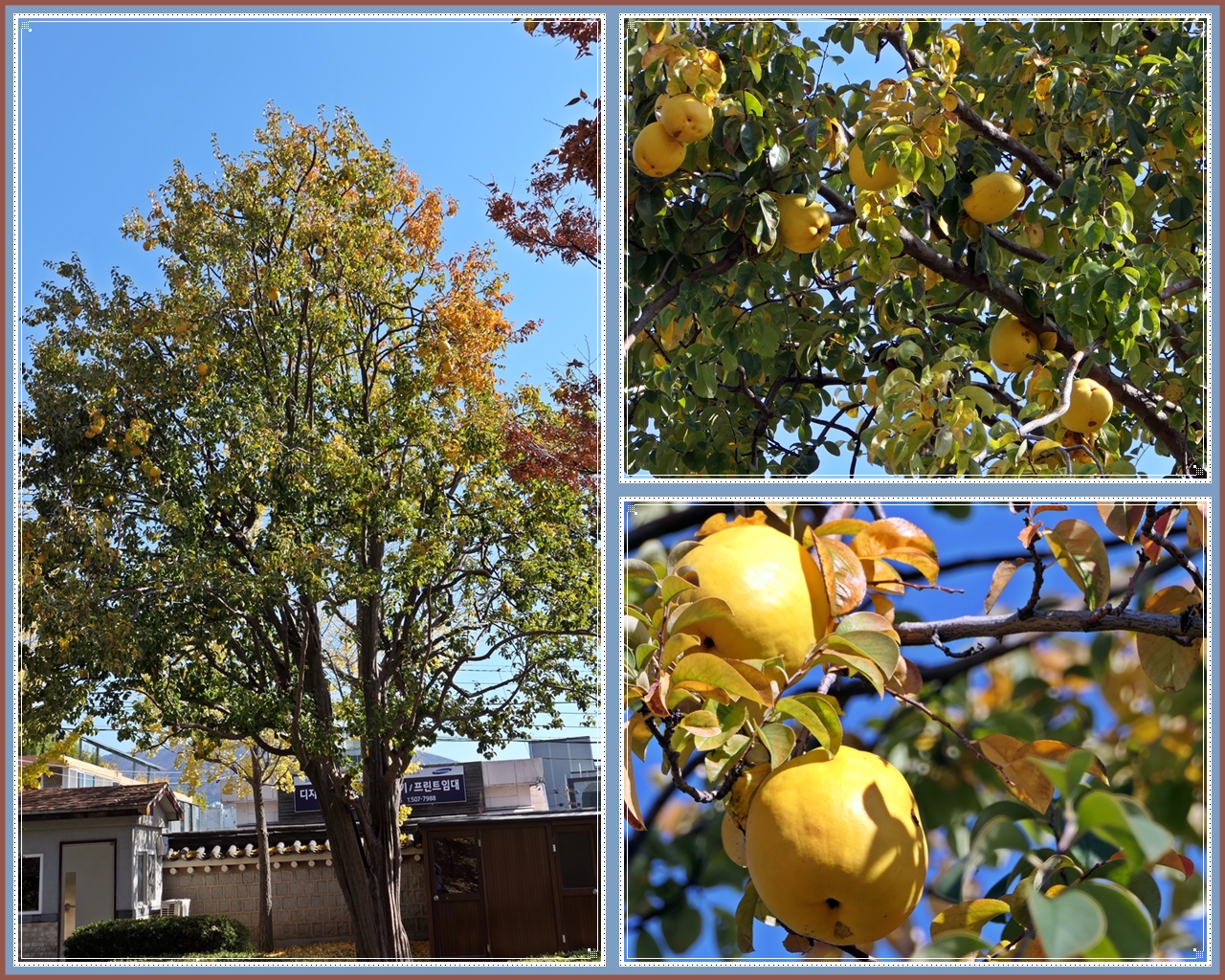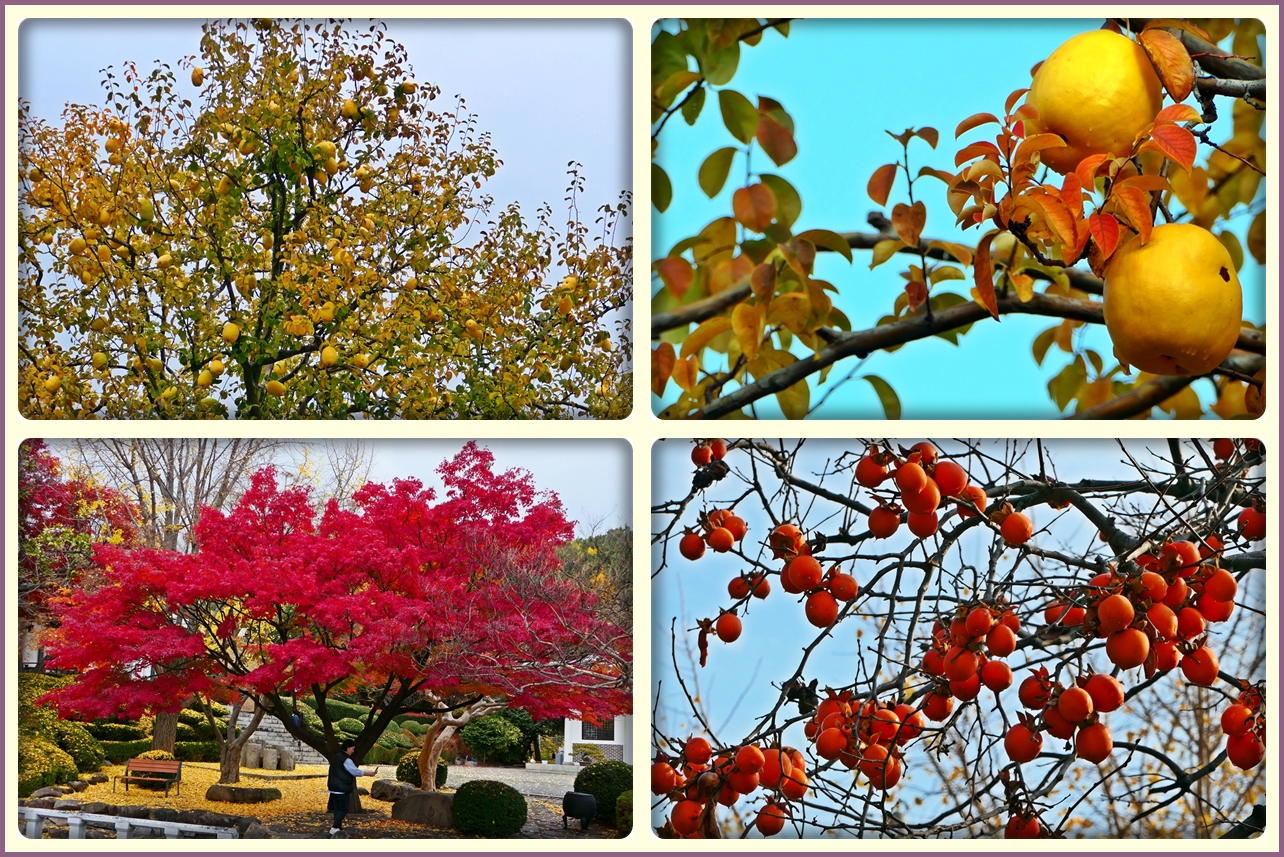 노란은행과 붉은 단풍, 나무에서 홍시가 되는 똘감, 탐스런 모과가 한자리에서 가을을 노래한다.