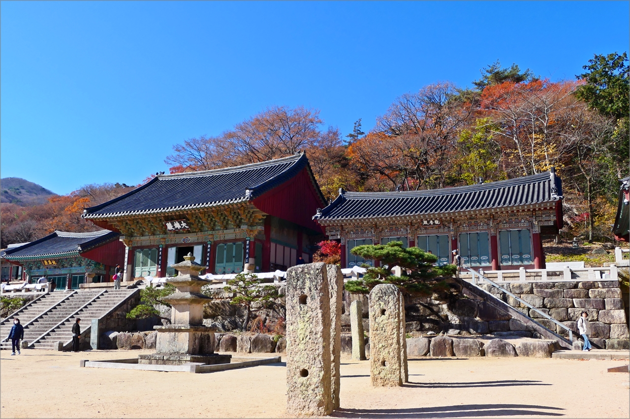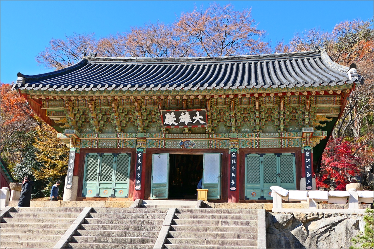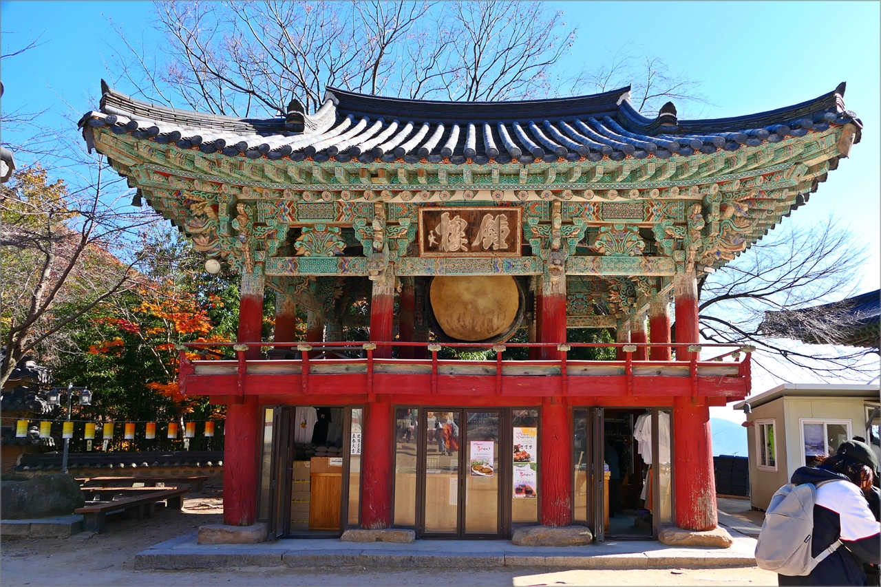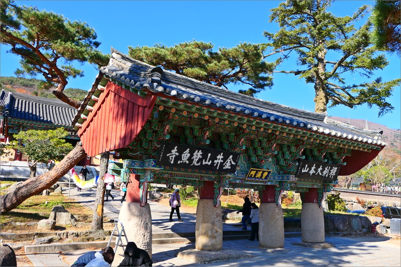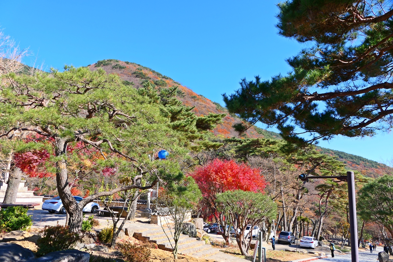 일주문 들어오기 전과 대웅전에서 본 단풍 고운 범어사 계명봉