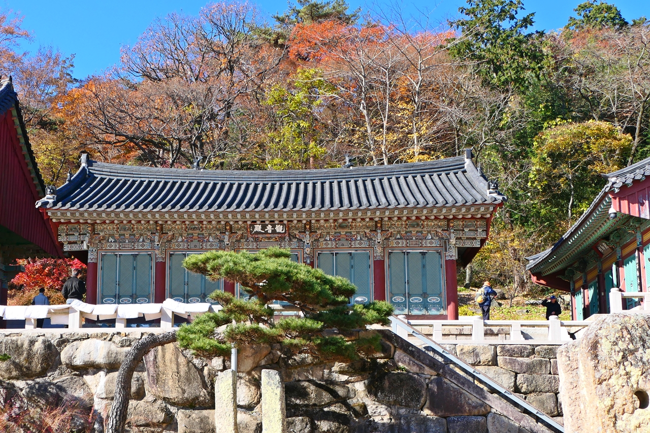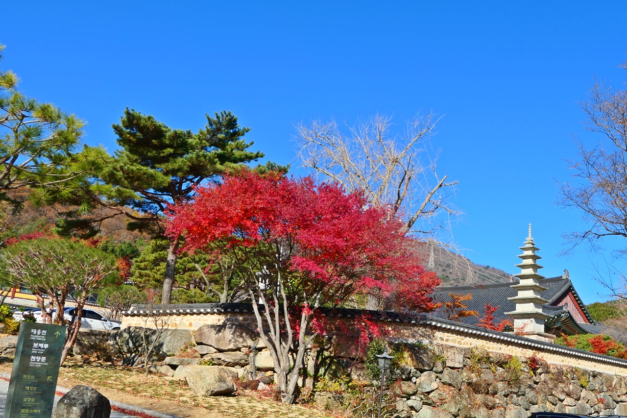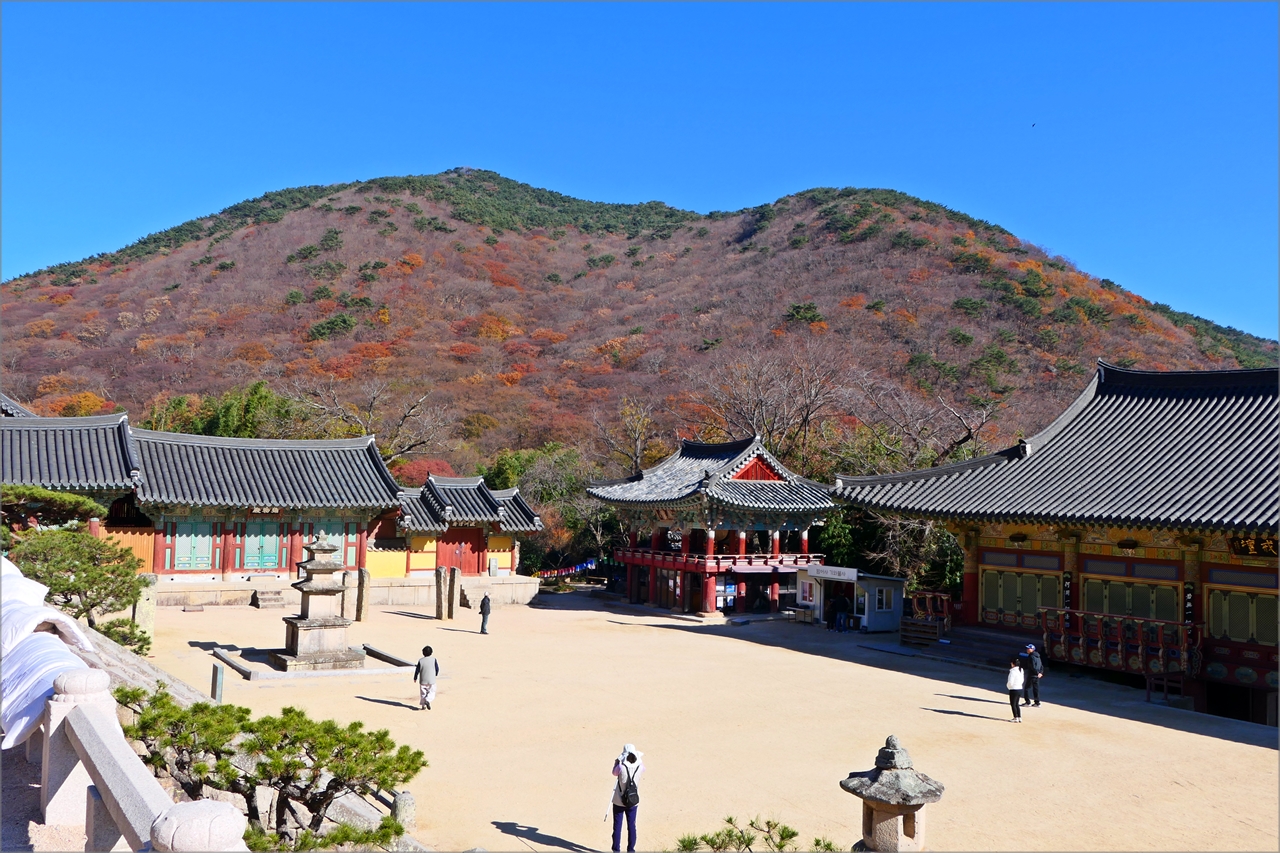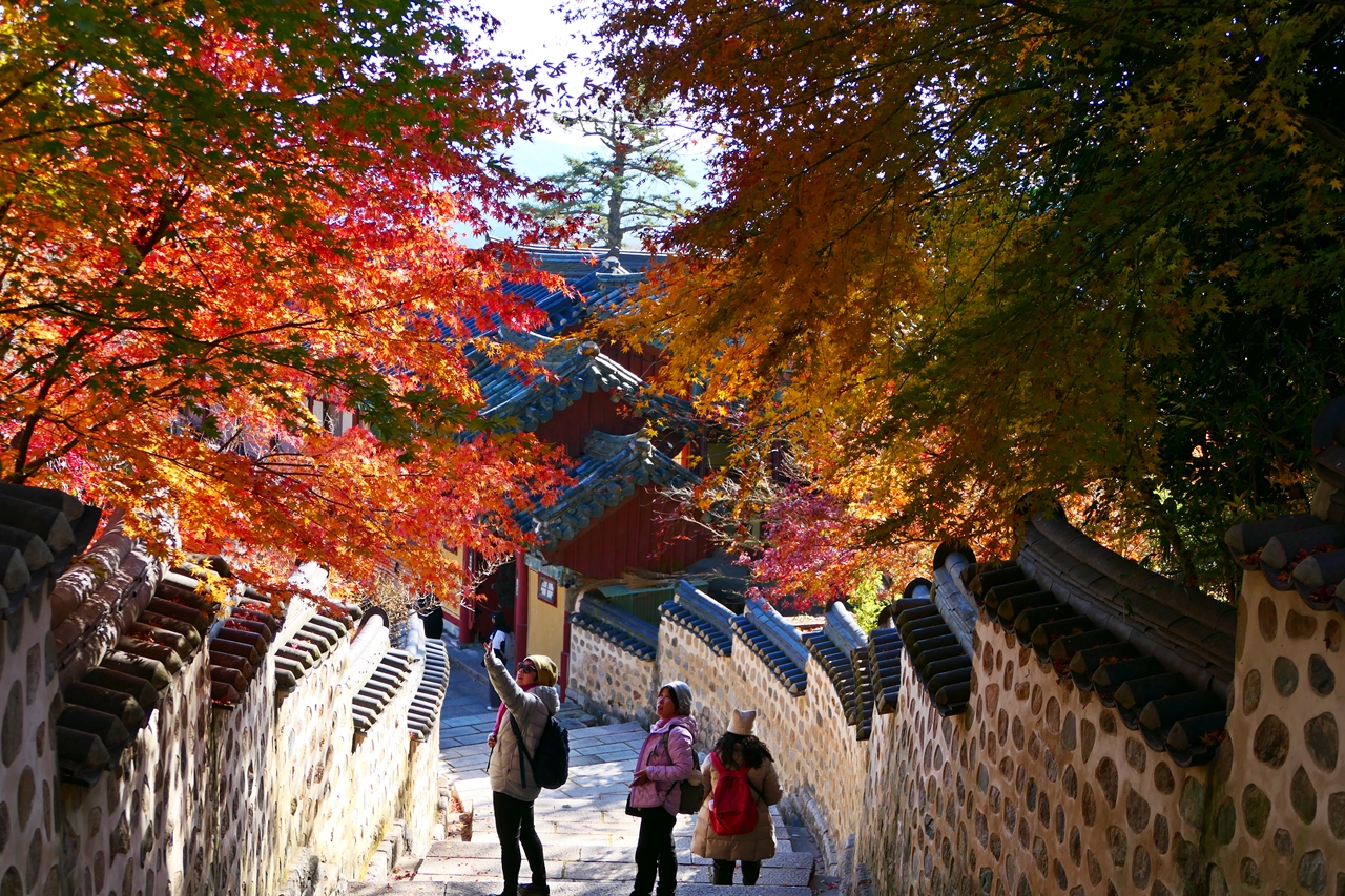 대웅전에서 설법전 내려가는 기와담장과 단풍에 어루어진 곳 (범어사의 으뜸 포토죤)