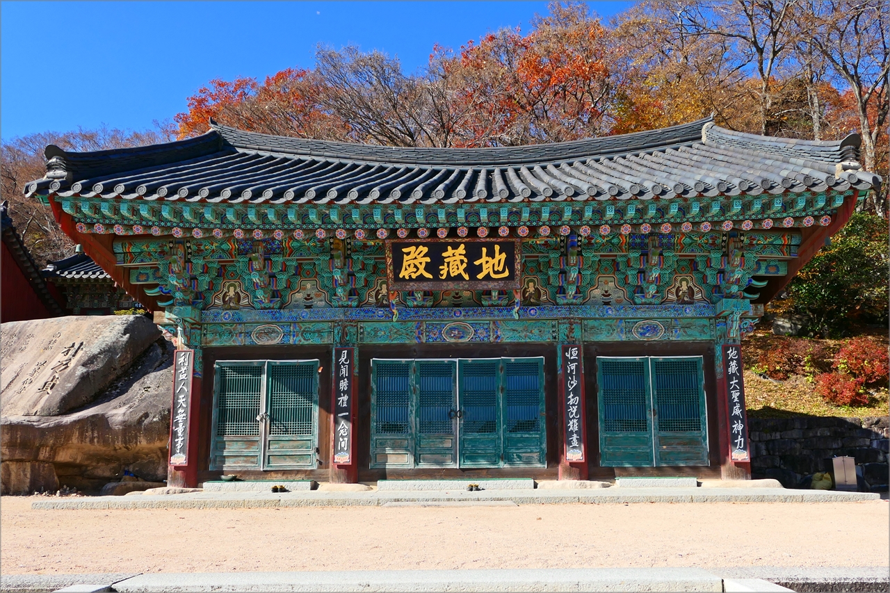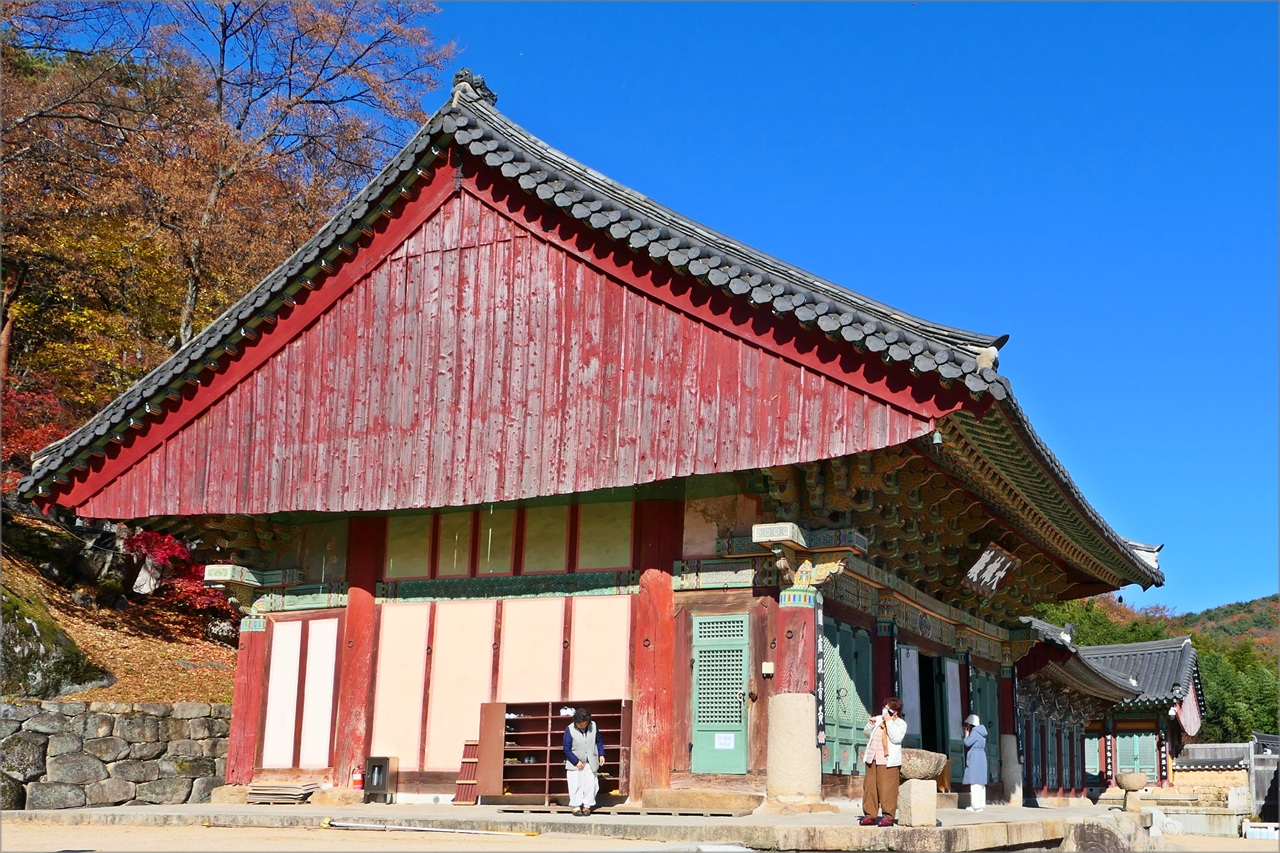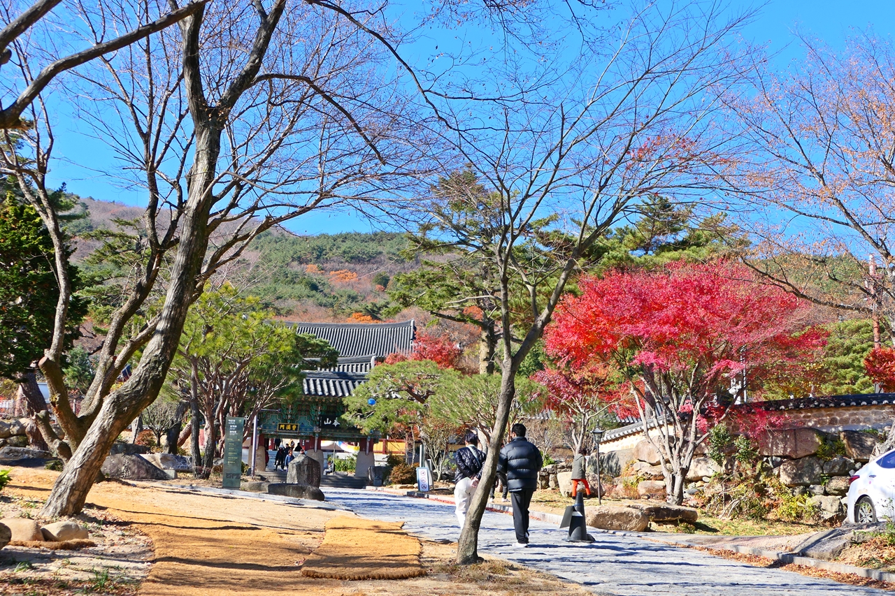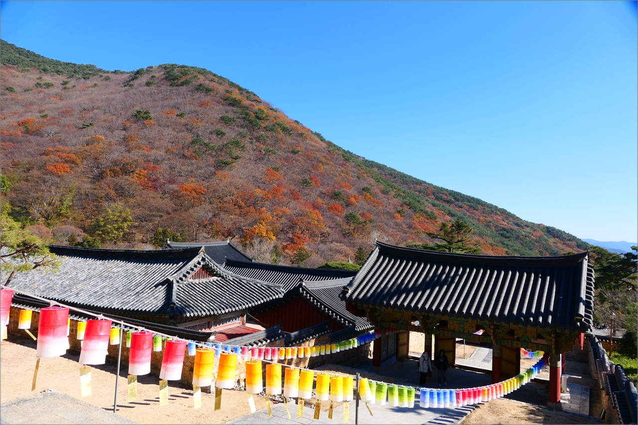 대웅전에서 설법전 내려가는 기와담장과 단풍에 어루어진 곳 (범어사의 으뜸 포토죤)