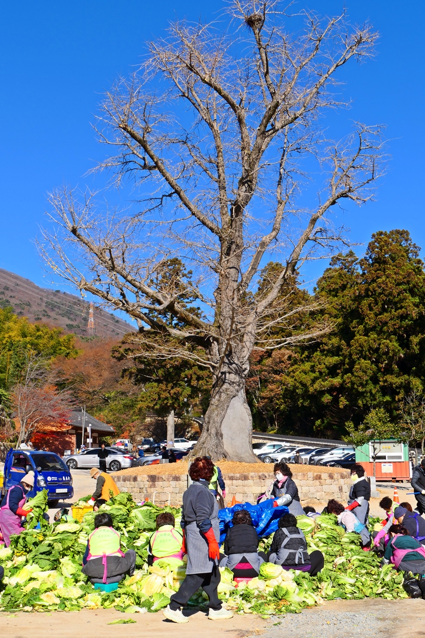 600년 넘은 은행나무의 노란 잎은 다 떨어지고 그 앞에서는 김장준비가 한창이다.