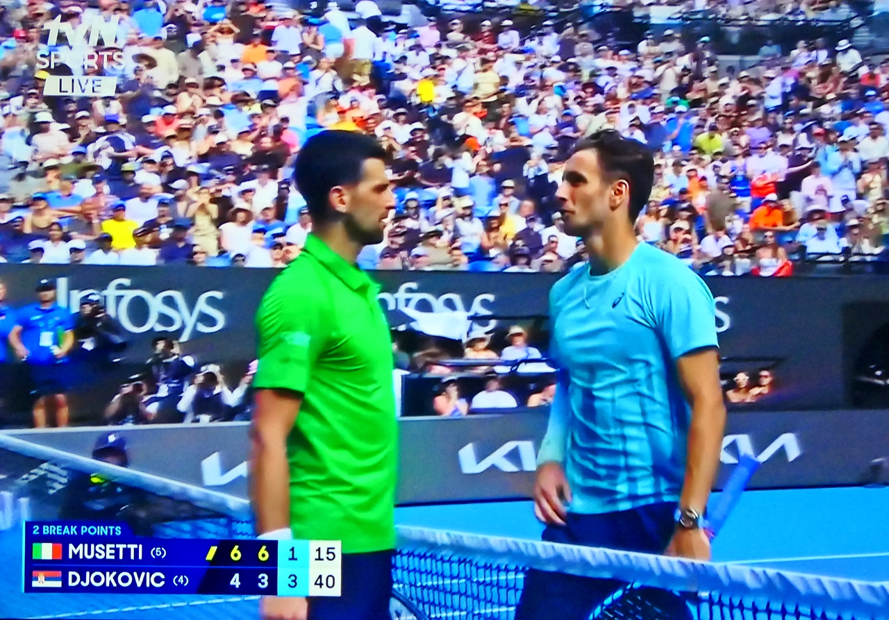 2세트를 따고 조코비치를 이길 수 있었던 찬스에 무세티가 버벅지 부상으로 기권.