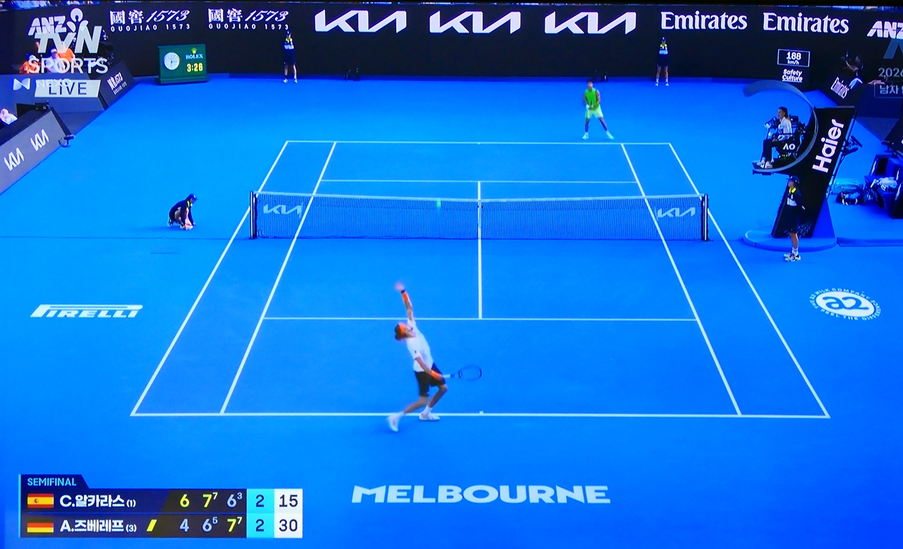 결승전 1세트 첫게임 조코비치의 첫 서브 모습