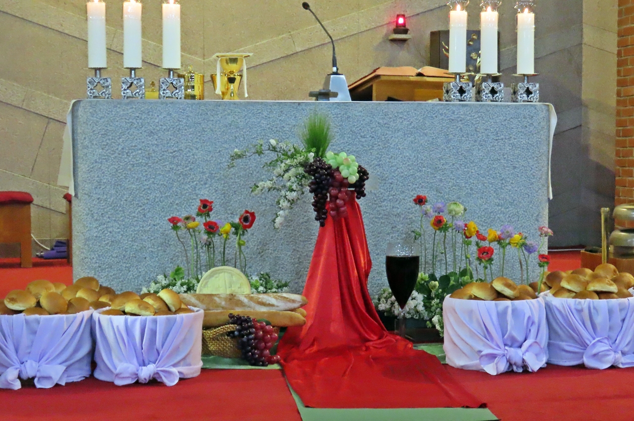 최후의 만찬을 베풀어 성체 성사(聖體聖事) 제정하심을 기념한다.