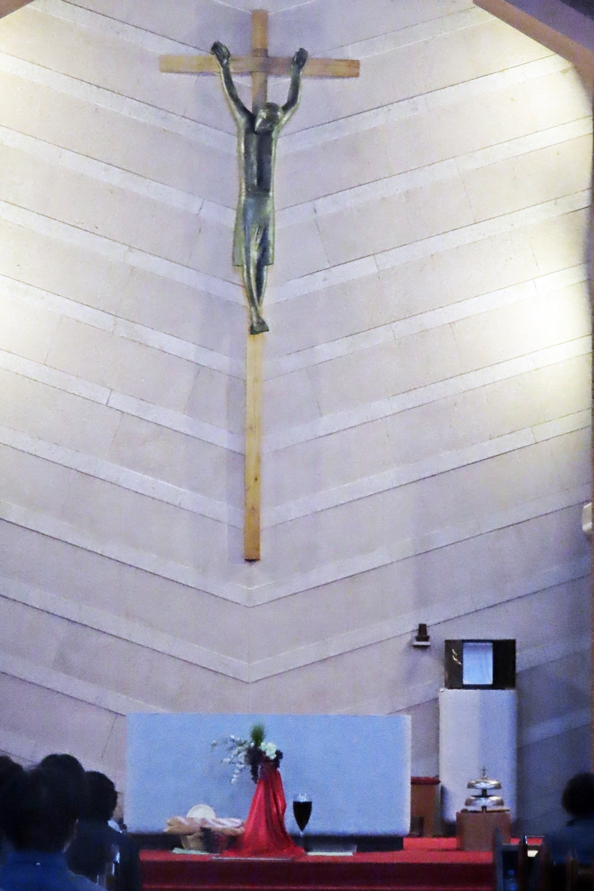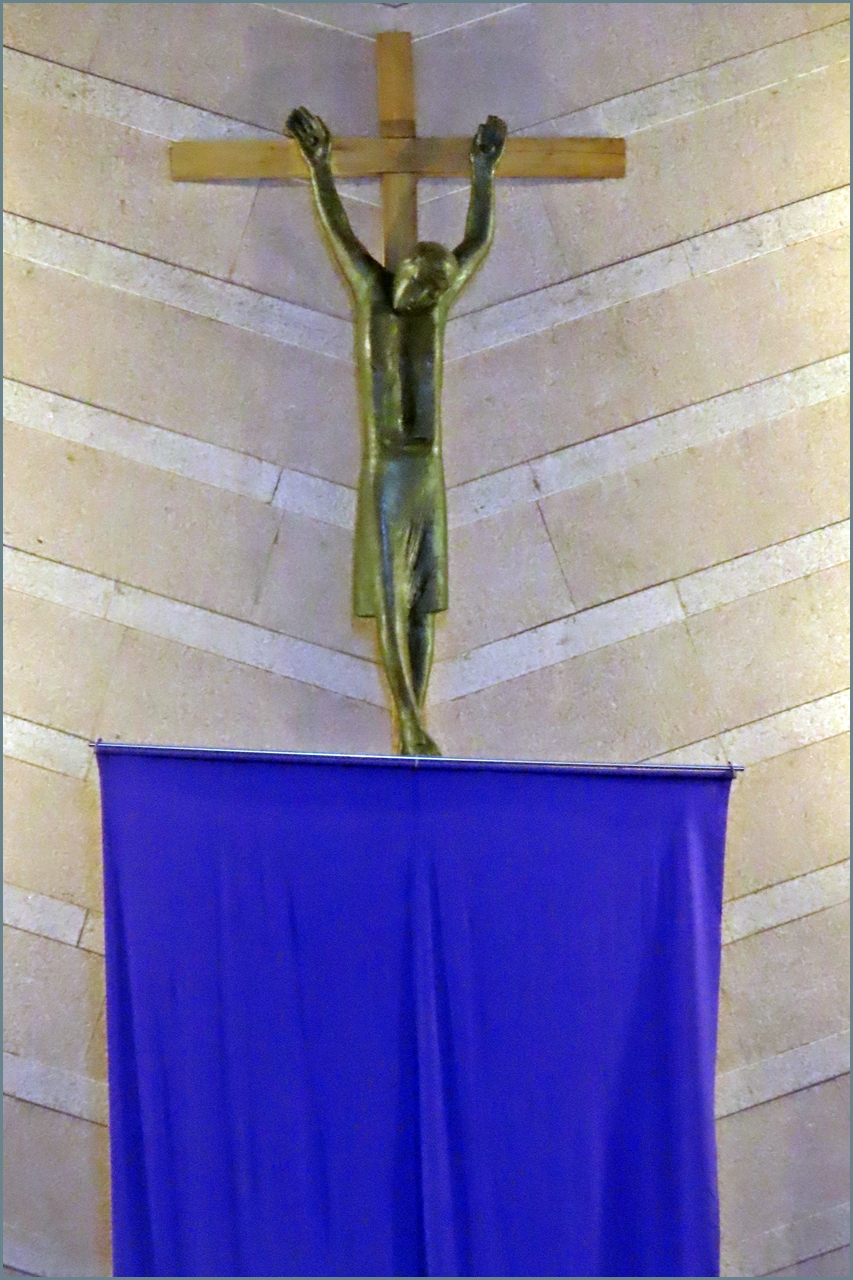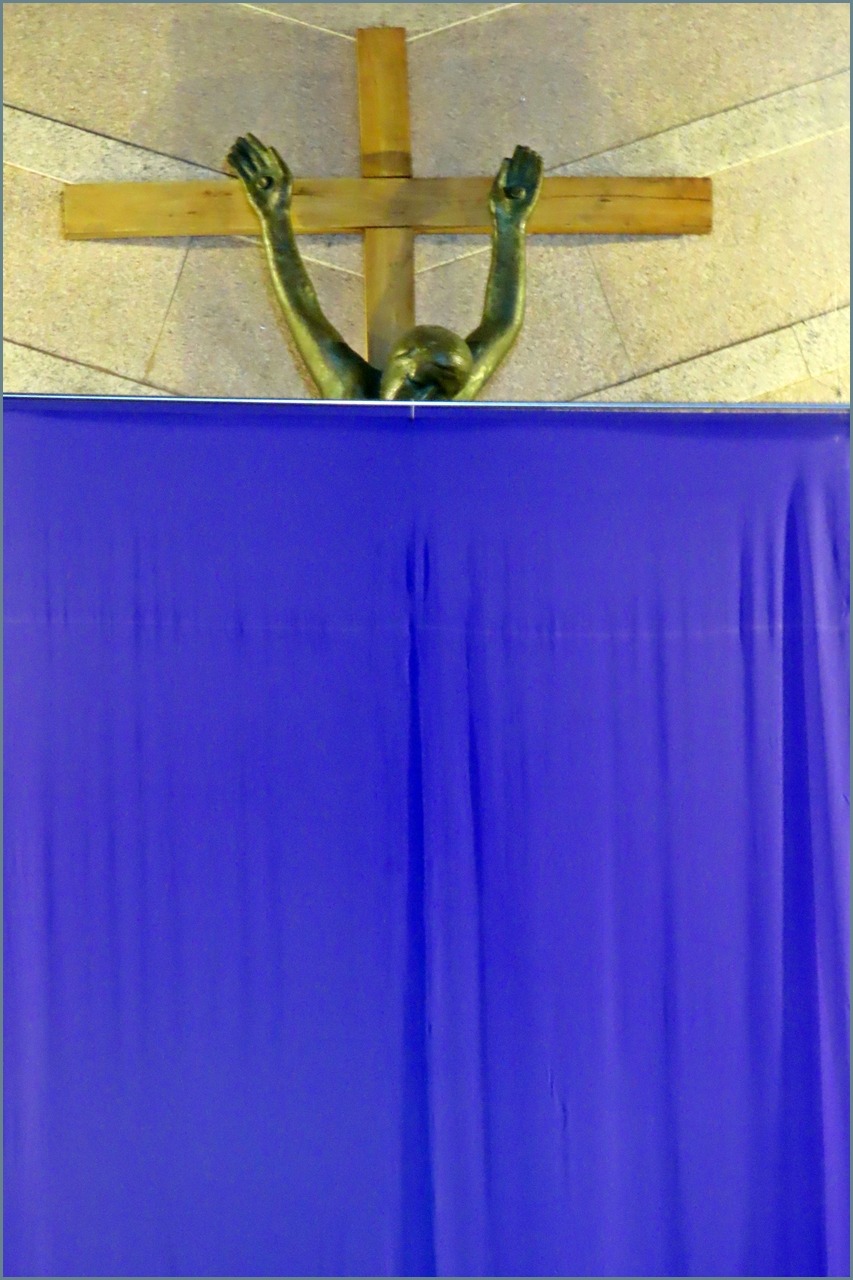 예수님이 계시지 않는 성당의 제대는 깨끗이 치워지고 십자고상은 자색천으로 가리워진다