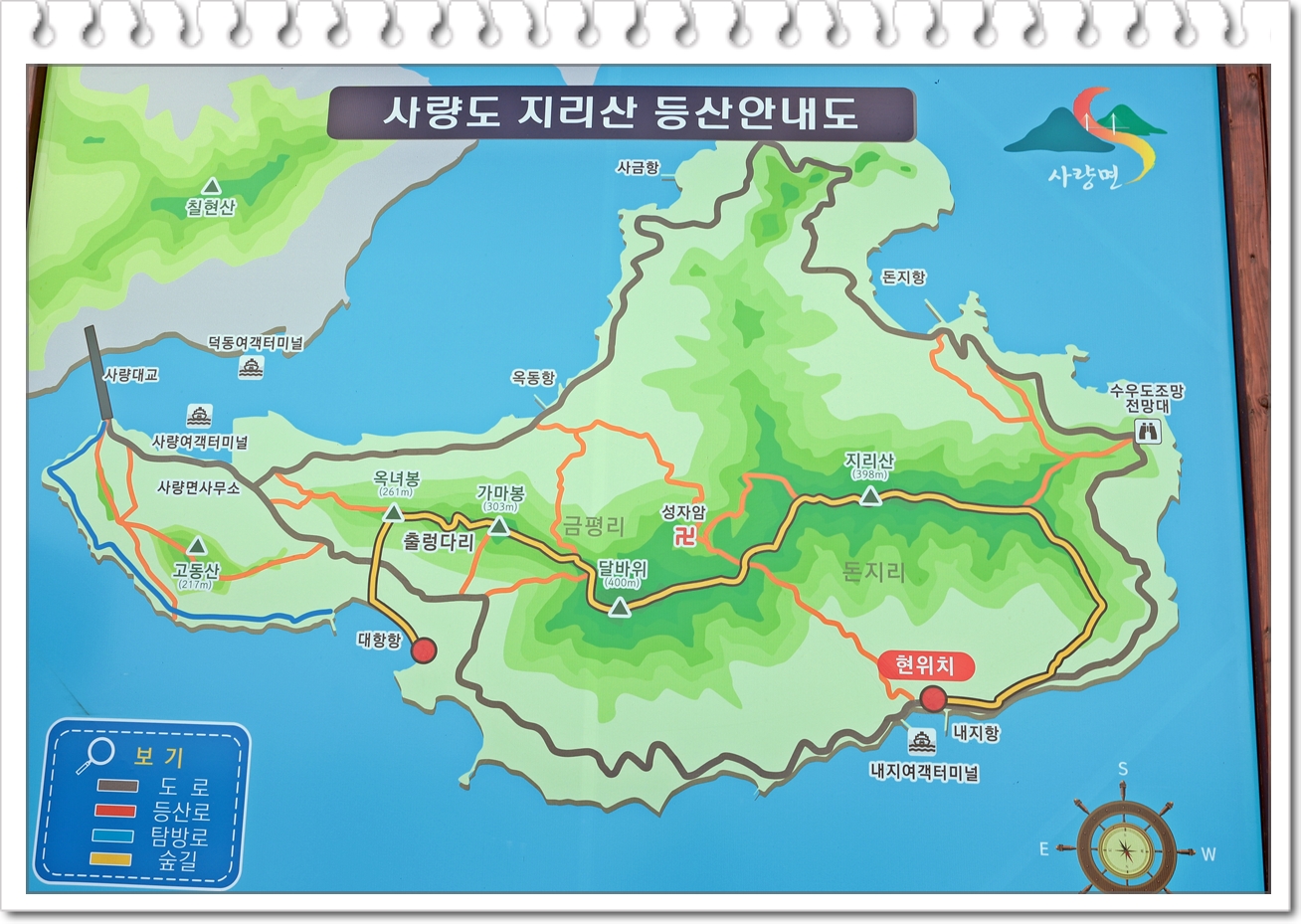 사량대교를 건넌 후 칠현산 등반길에 본 아름다운 섬마을들