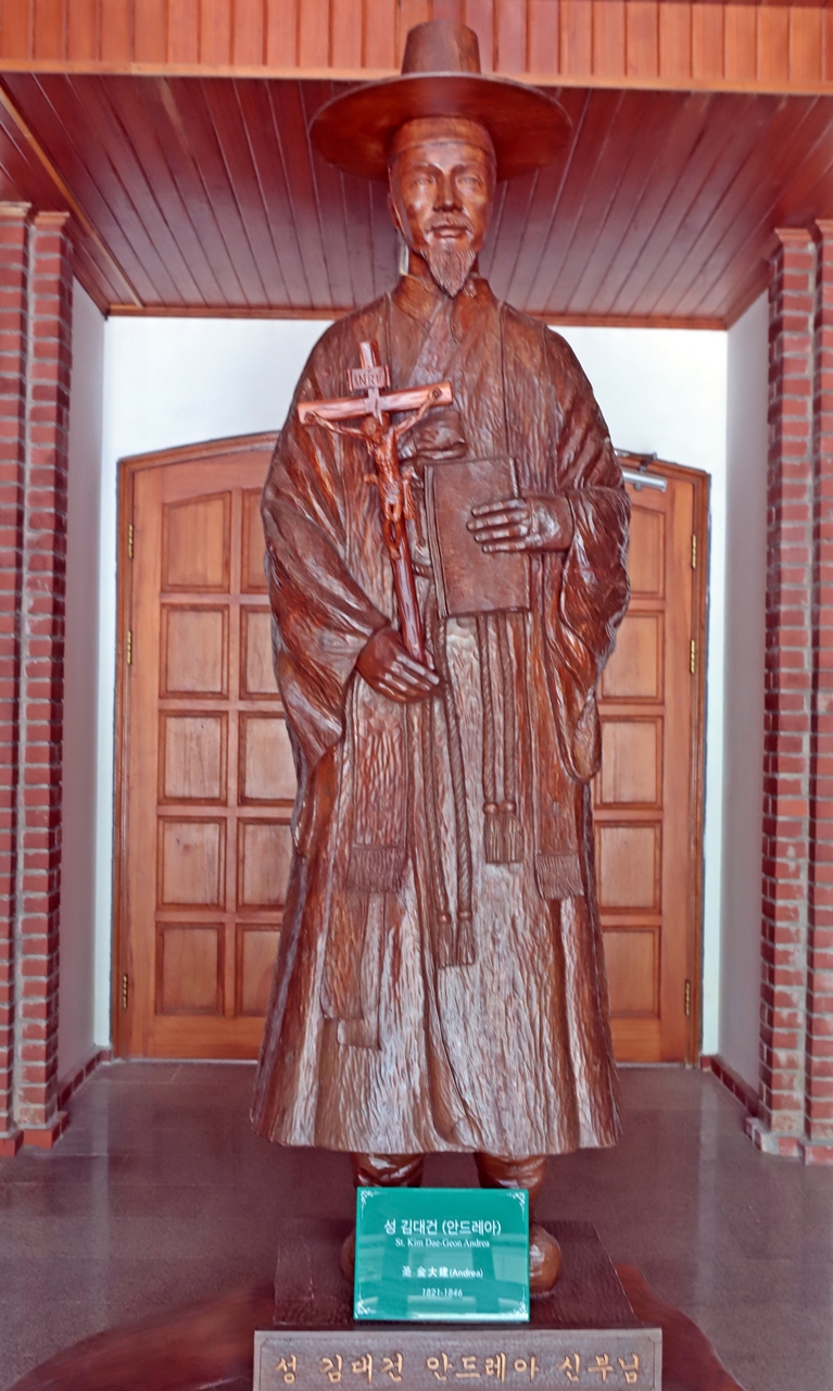 성모당 내부와 김대건 신부의 목각인형