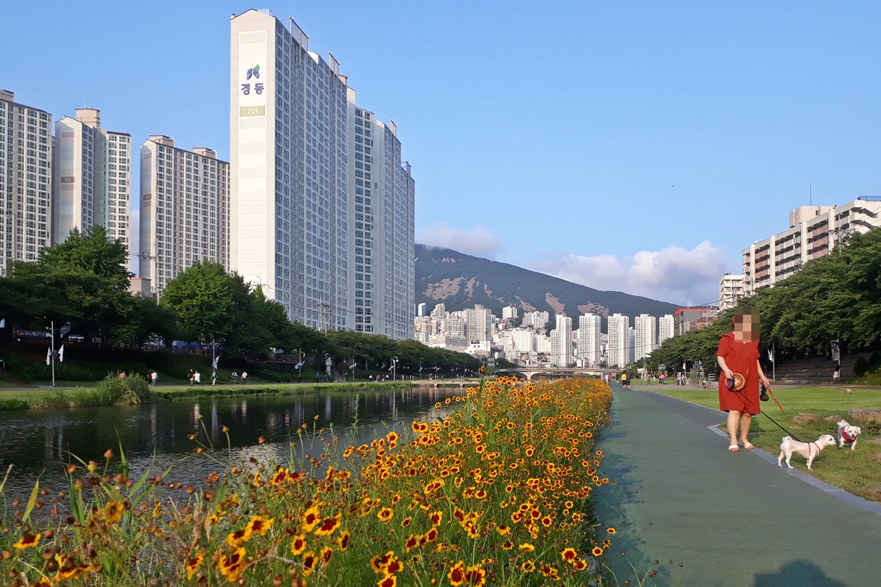 벚나무 녹음이 짙은 온천천 양쪽 강변도