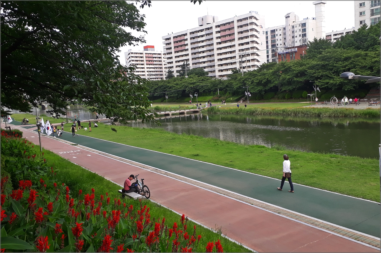 산책나오거나 운동하는 시민들을 반갑게 맞이하는 듯하다.