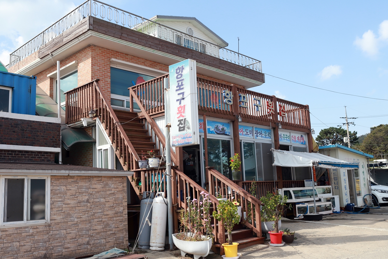 태안군 소원면 개목항에 위치한 항포구횟집에서자연산 회식사를 하다.