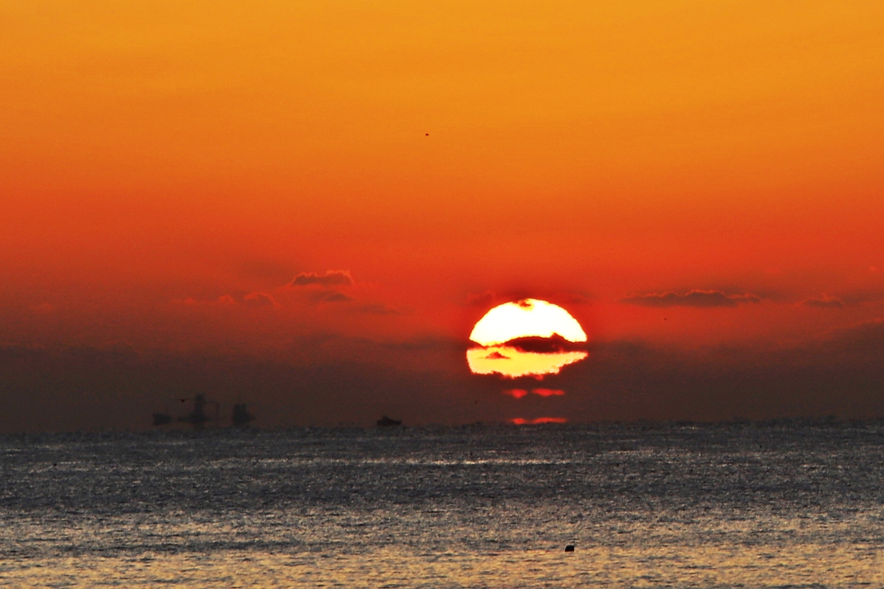 모처럼 수평선 일출이었으나 구름띠 때문에 오메가는 연출되지 않음.