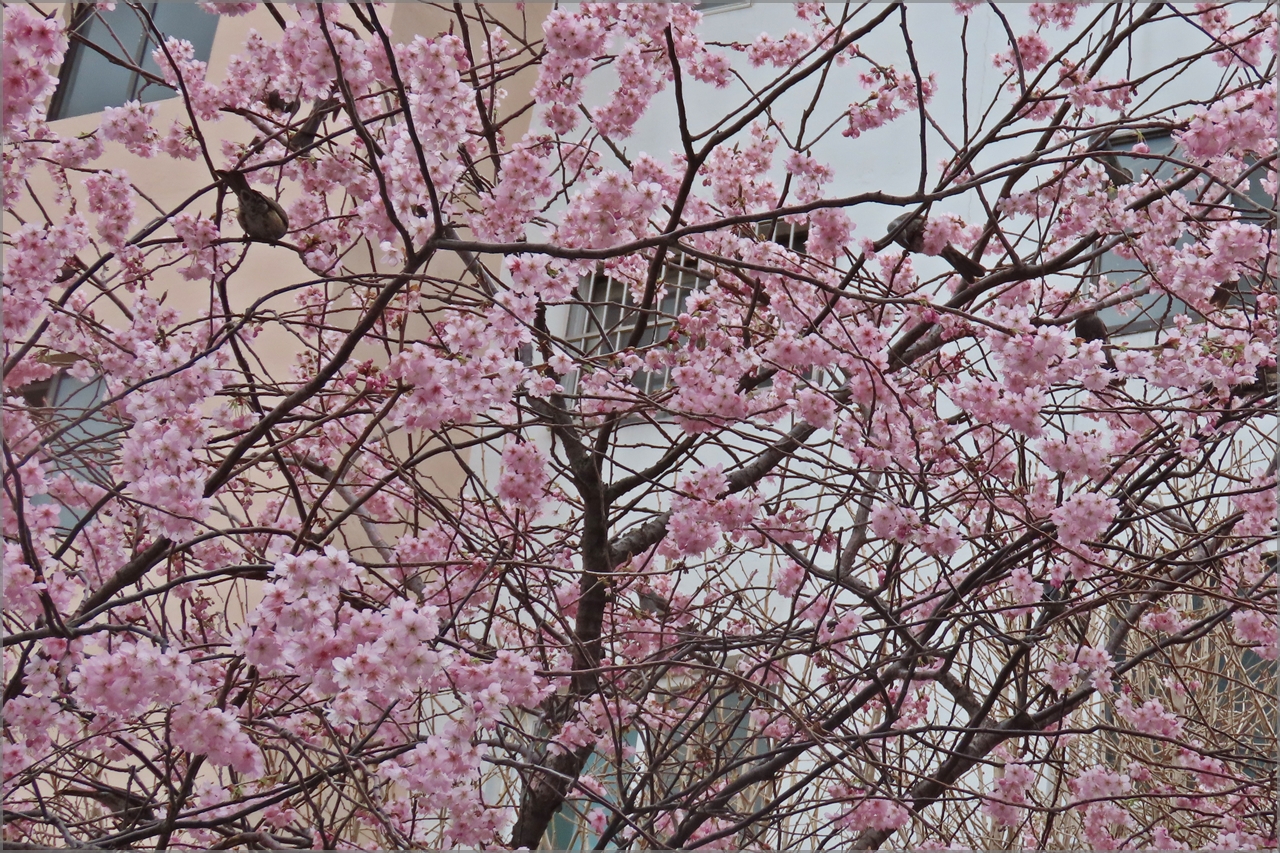 활짝 핀 벚꽃에 직박구리들이 날아와 신나게 놀고았다.