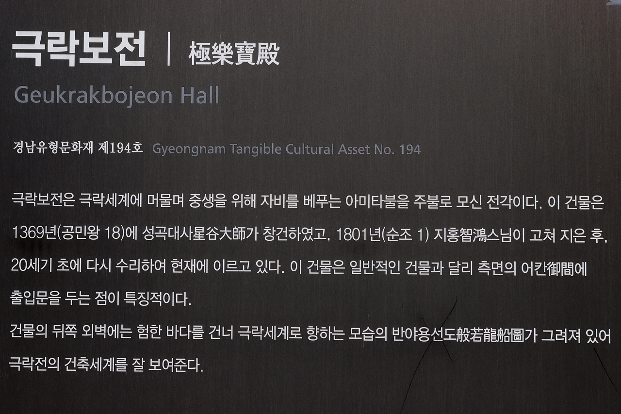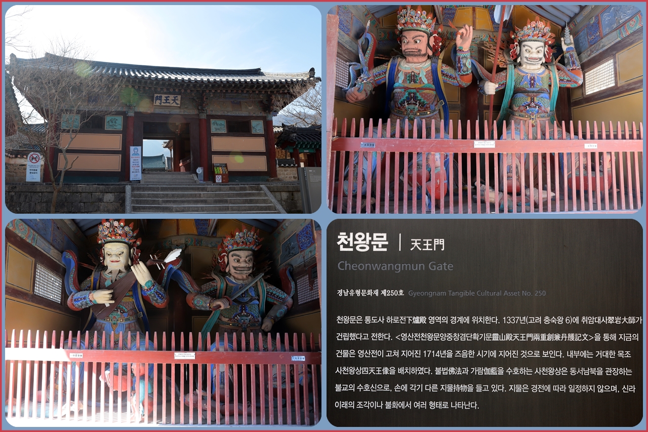 사찰을 수호하는 사천왕을 모신 건물로 웃음을 띤 사천왕의 모습이 재미있다.