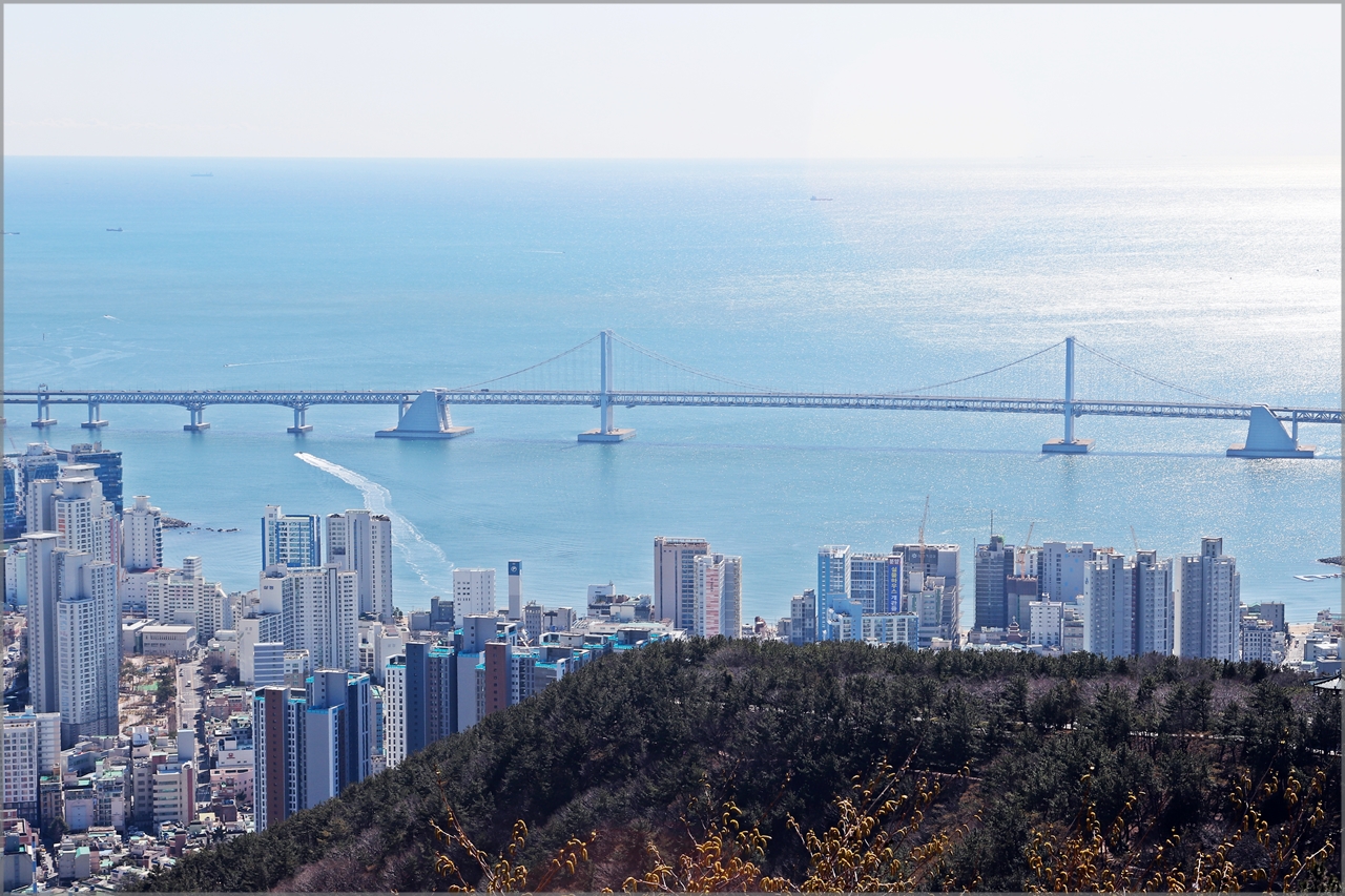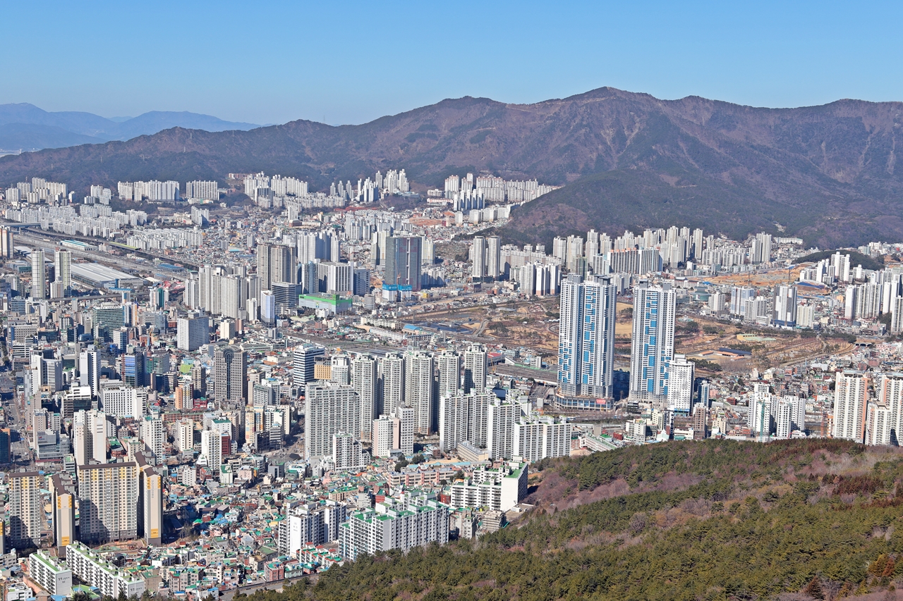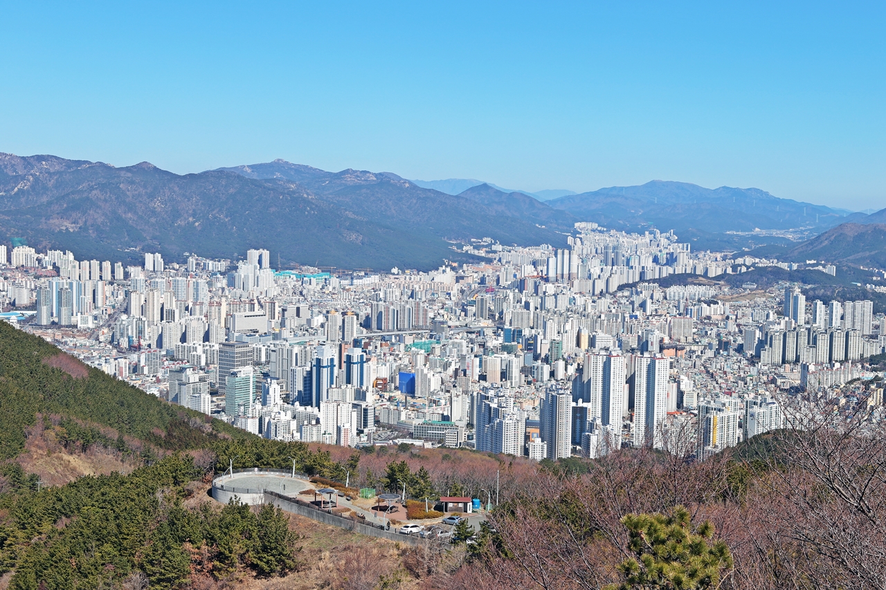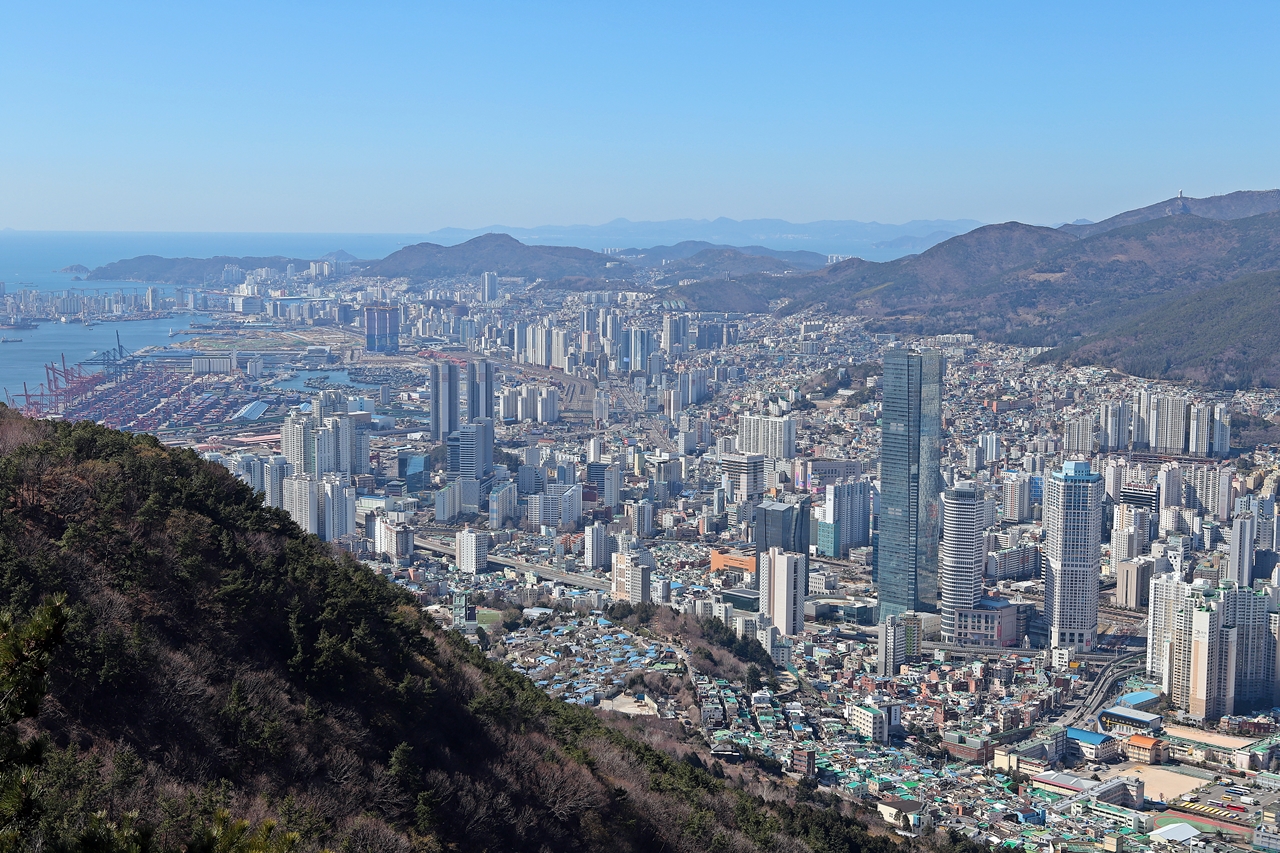 정상에서 본 부산의 여러 방향의 시가지