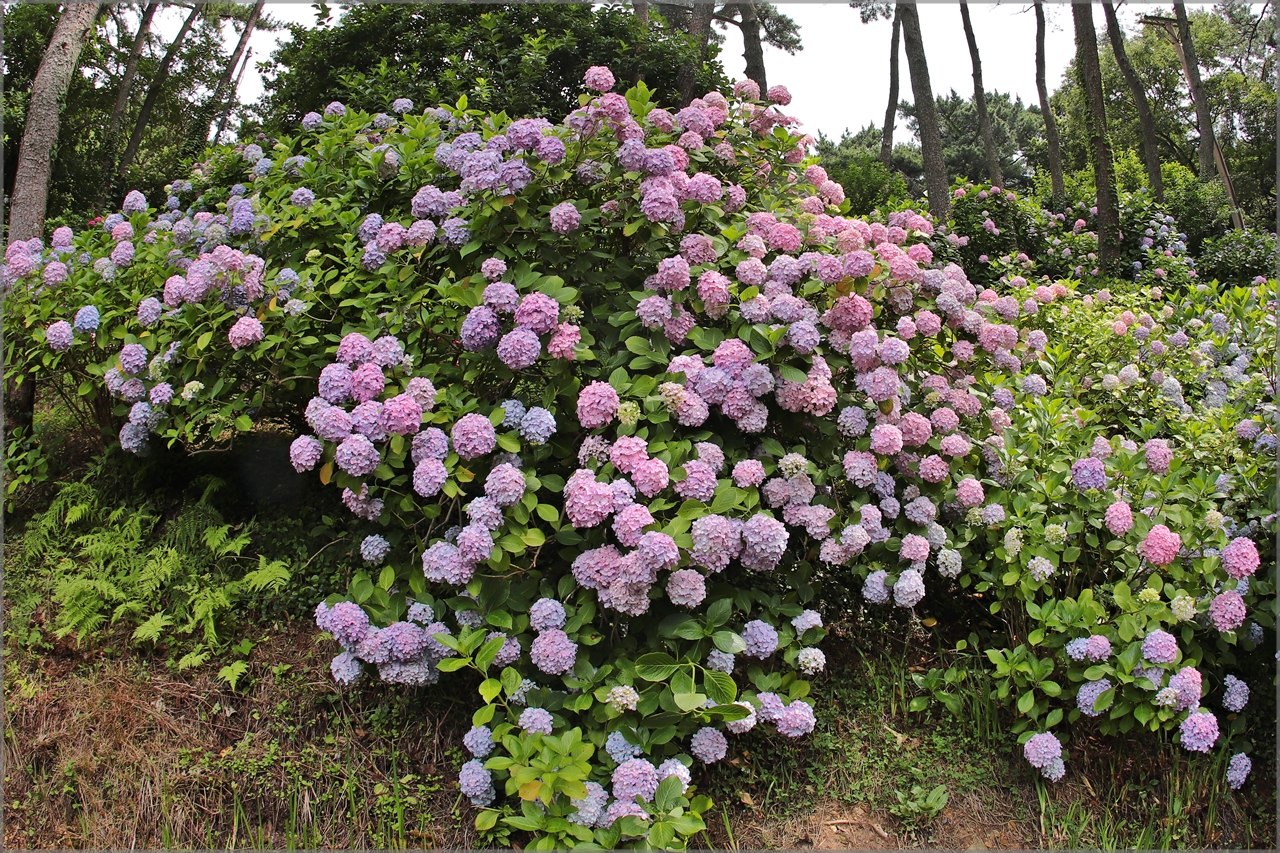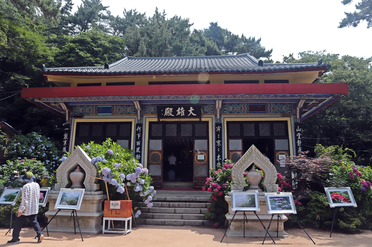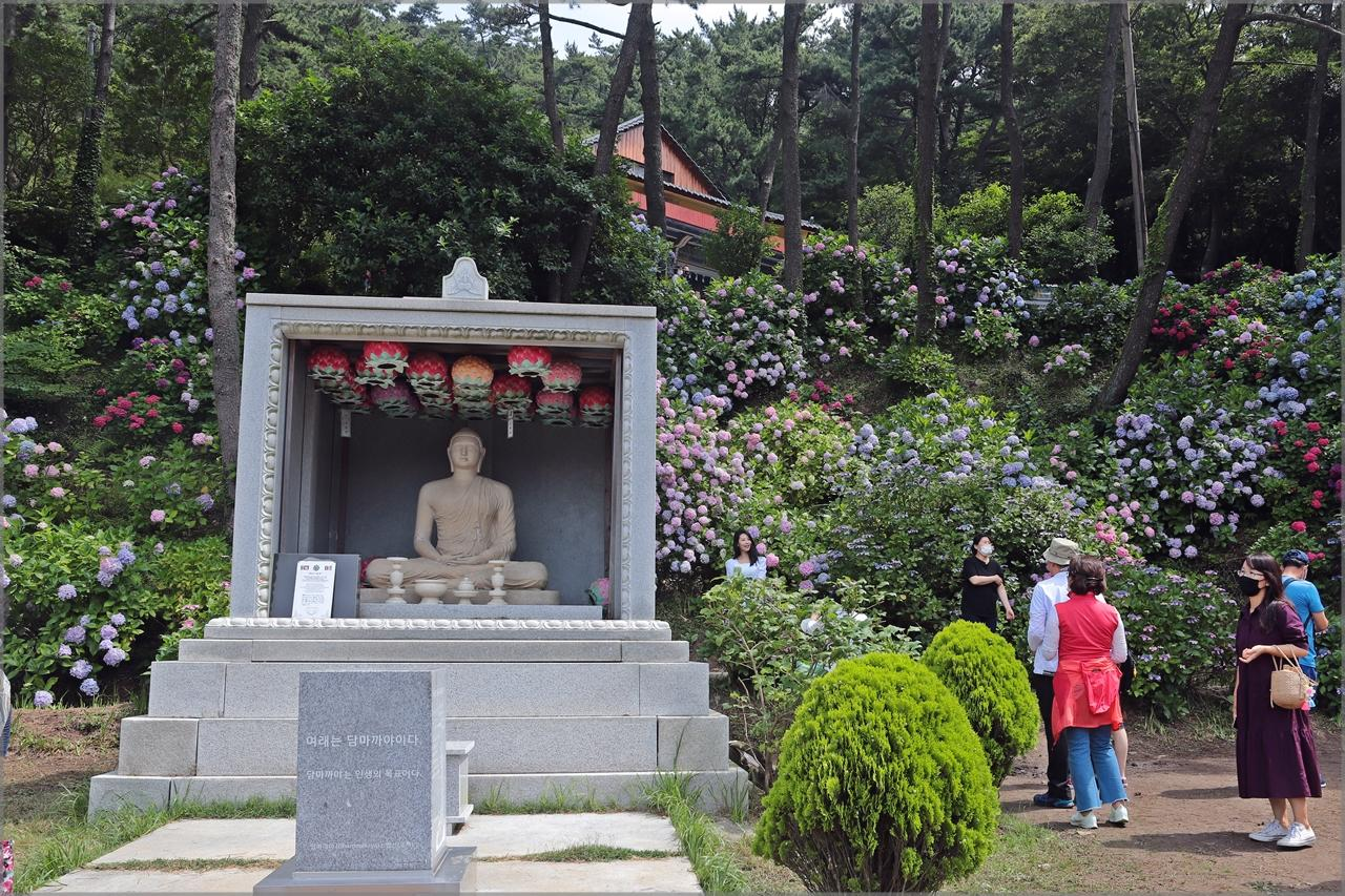 사찰 아래 공터 언덕에 온통 수국이 만개해 장관을 연출한다.