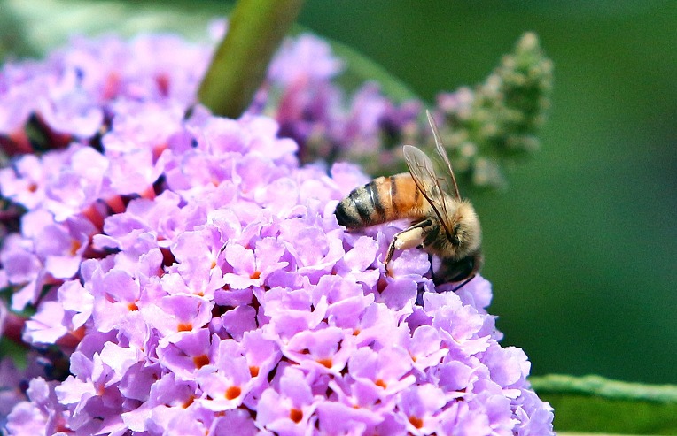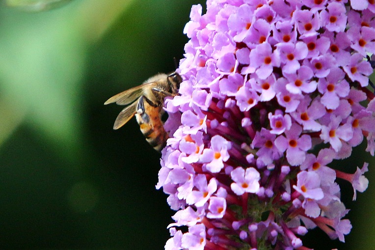 뒷다리에 꽃가루 뭉치를 달고 열심히 꽃가루를 모으는 꿀벌