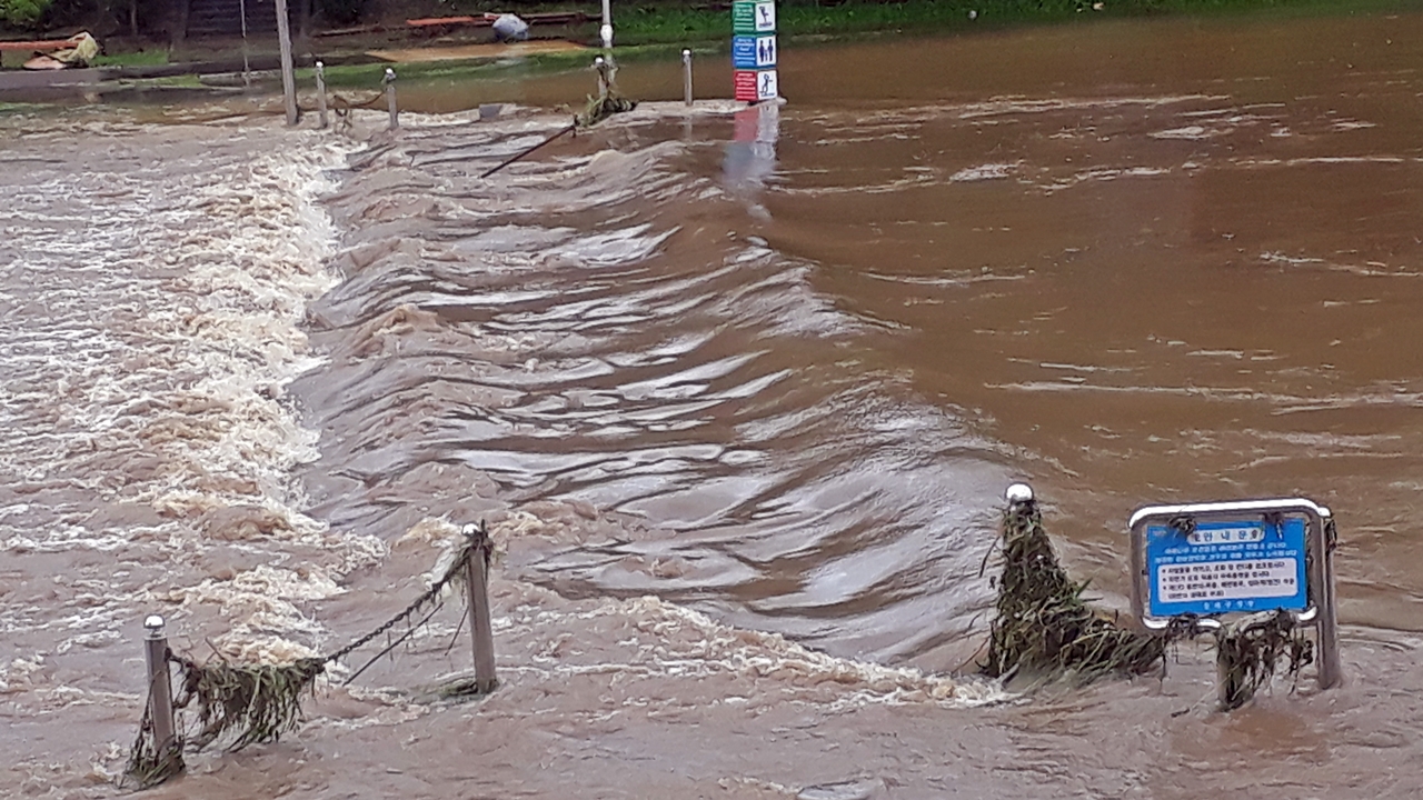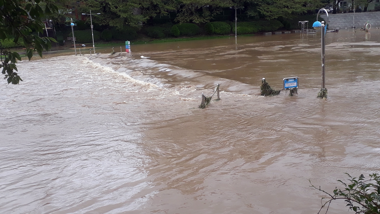 9호 태풍 마이삭으로 올해 6번째 범람한 온천천