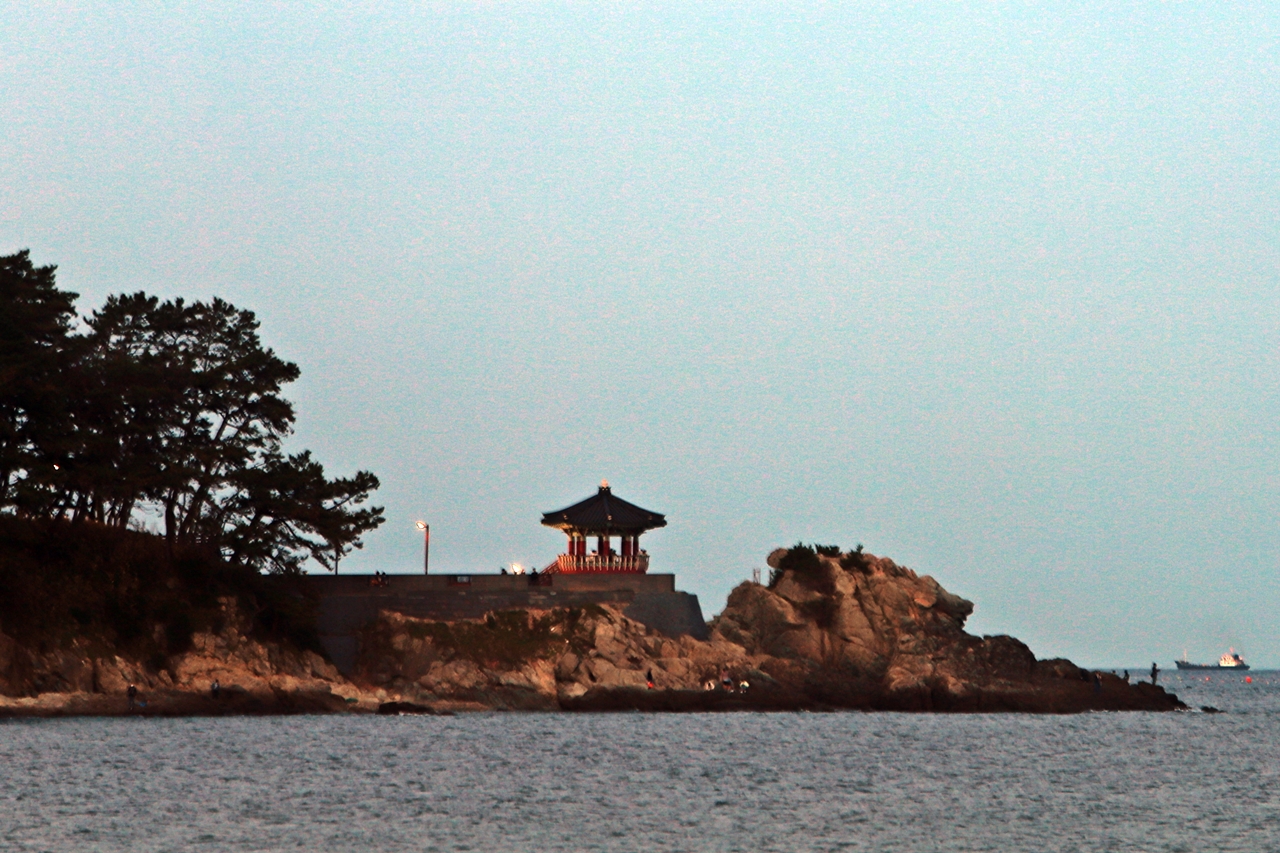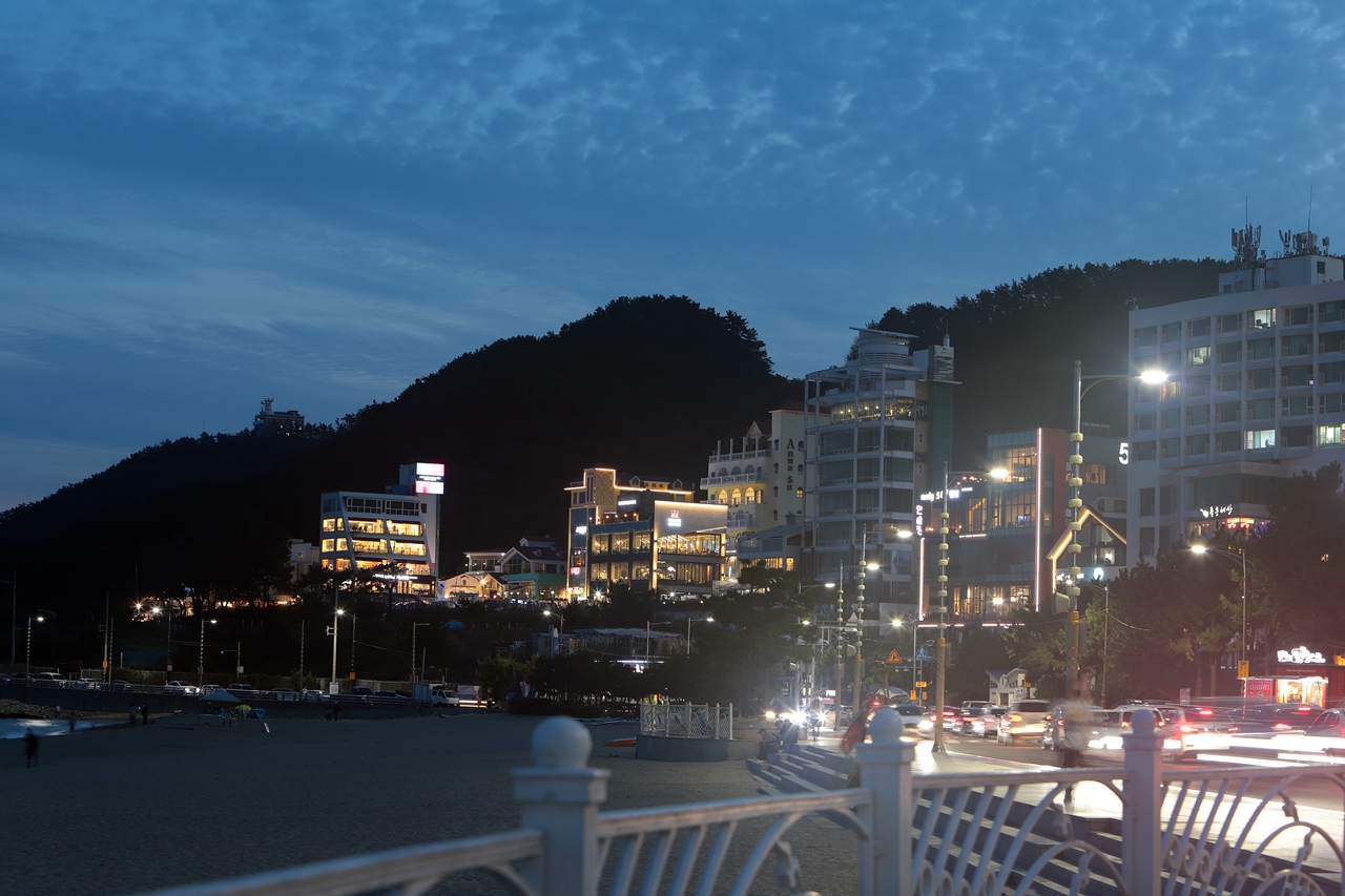 해가 지고 달이 뜨기 전의 죽도공원 송일정