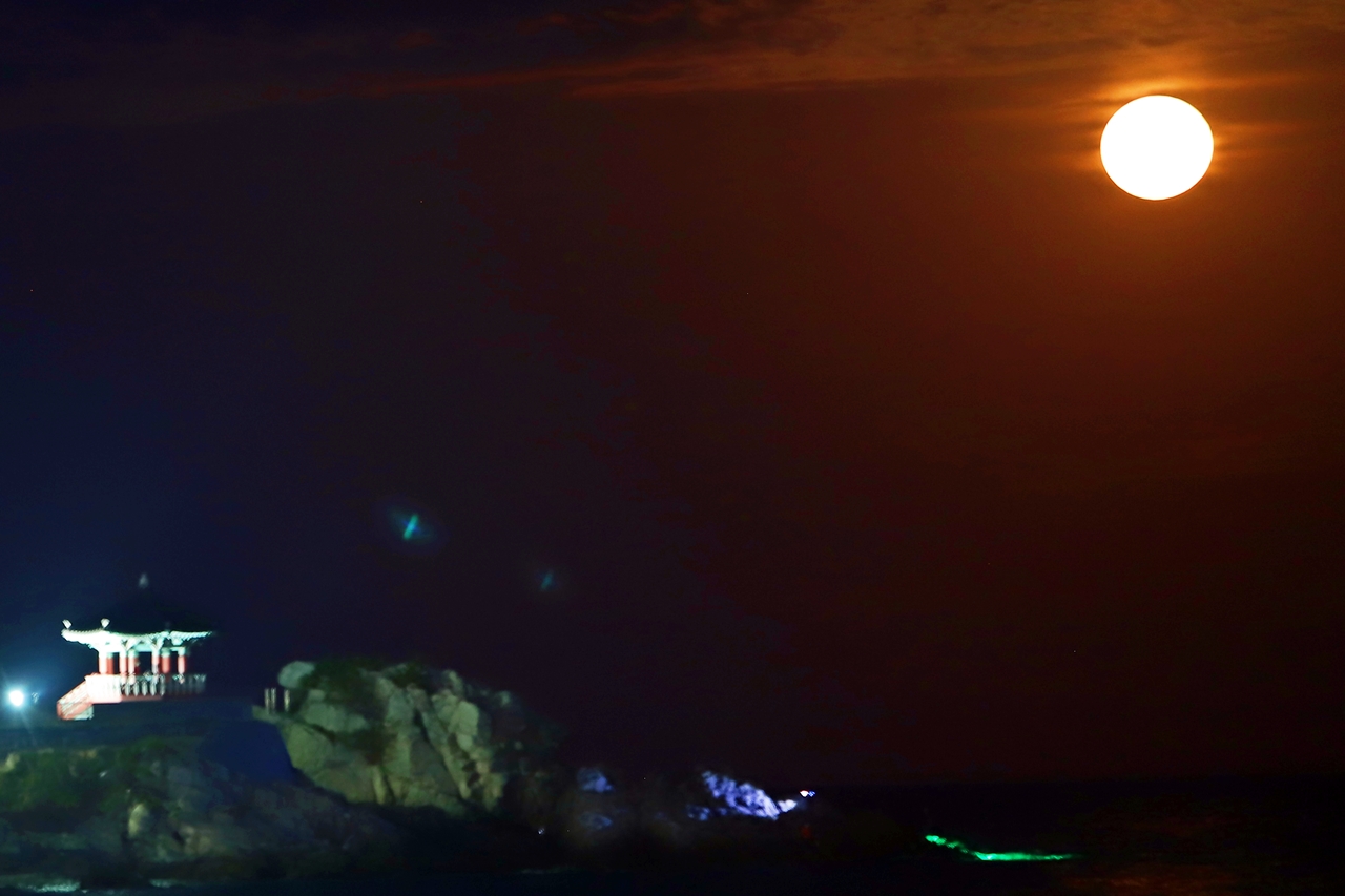 송정 죽도공원 송일정을 배경으로 떠 올랐다.