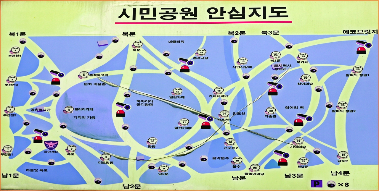 분수(4개소), 광장(6개소), 어린이놀이시설(9개소) 등과