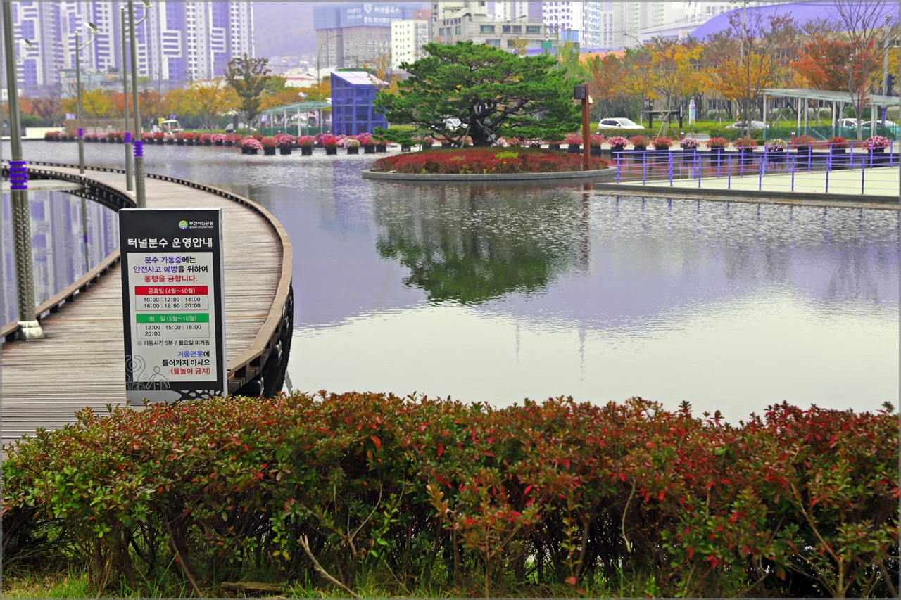터널분수와 방문자센터 앞의 인공연못