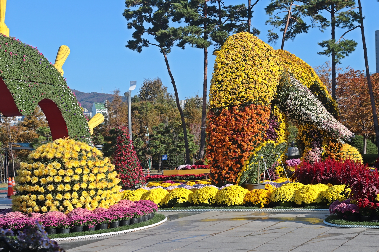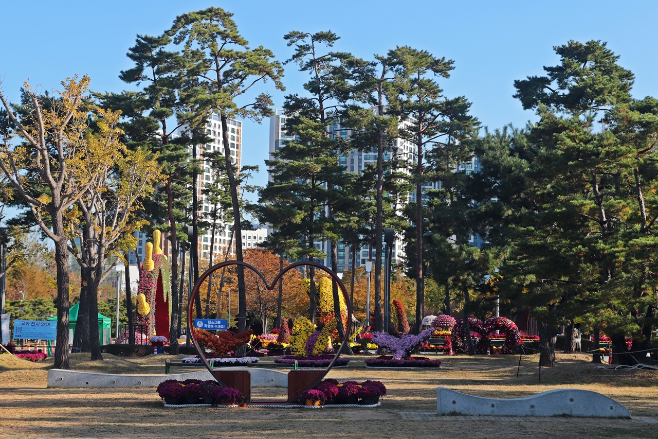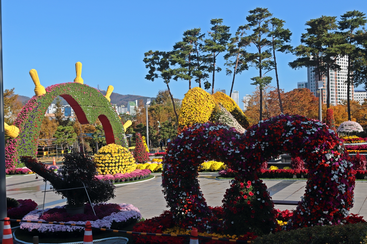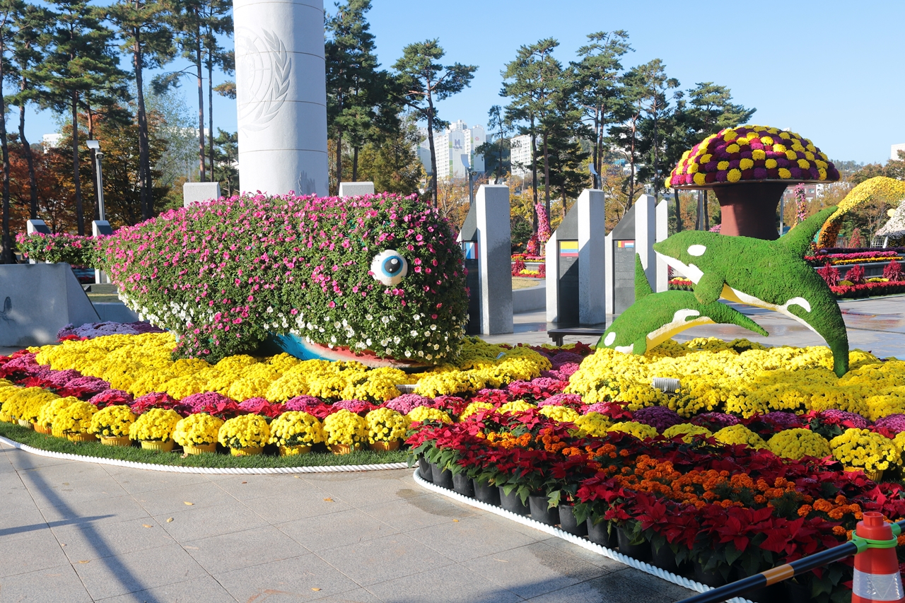 남쪽에 위치한 평화공원 국화전시회의 규모와 기간이