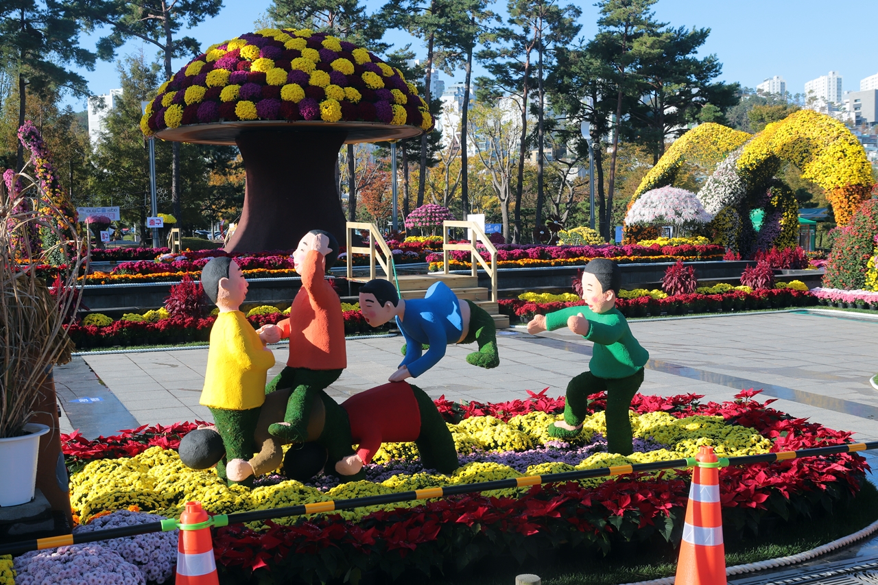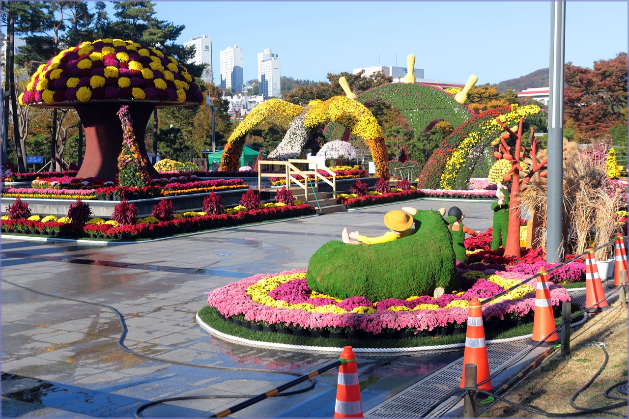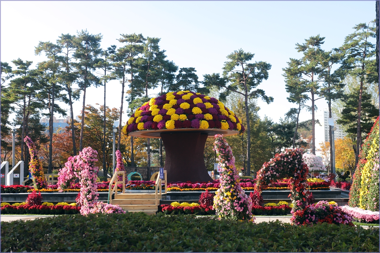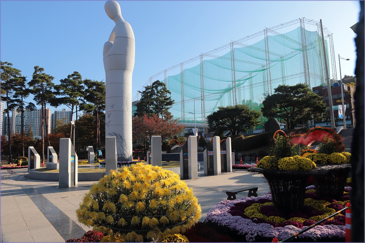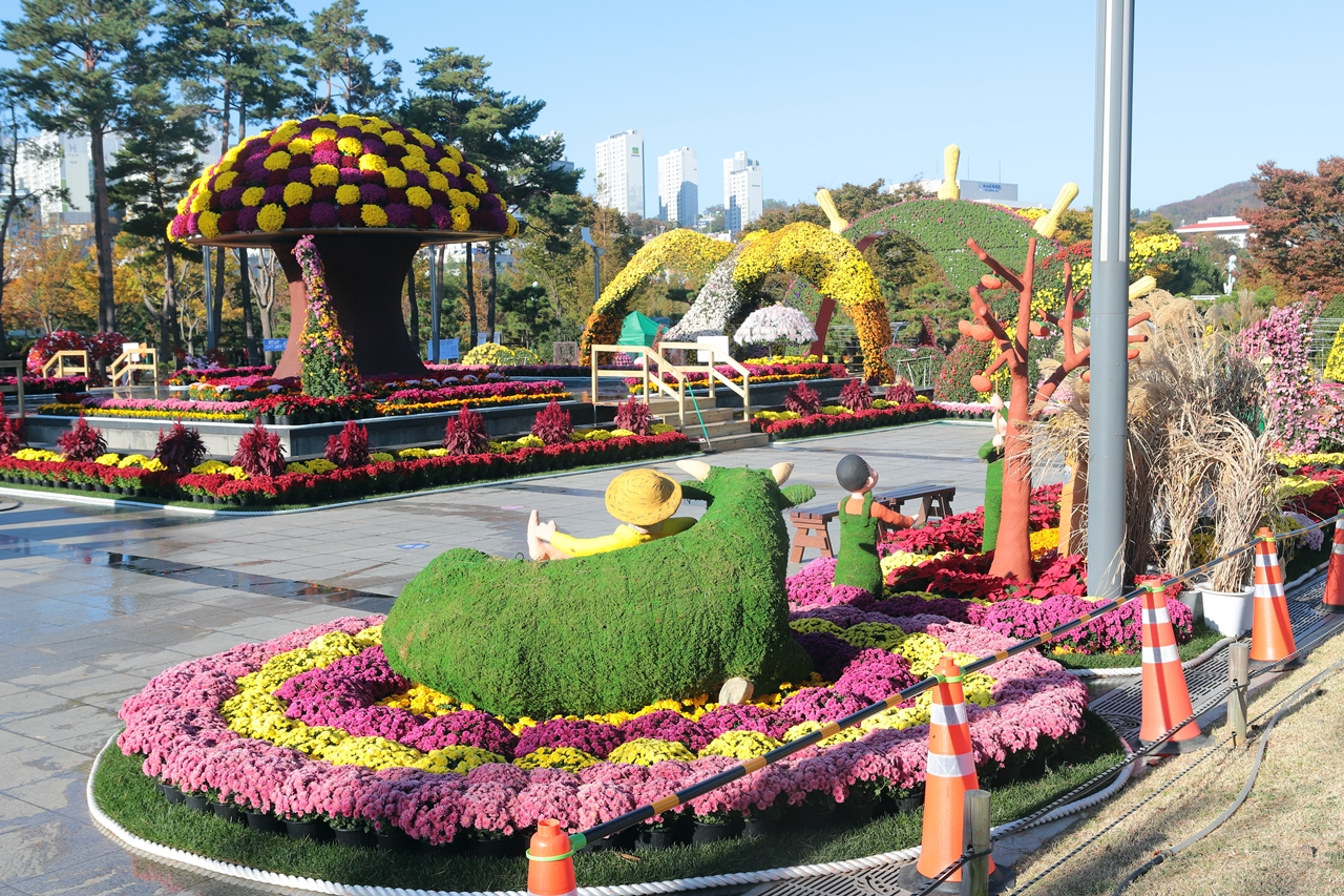 남쪽에 위치한 평화공원 국화전시회의 규모와 기간이